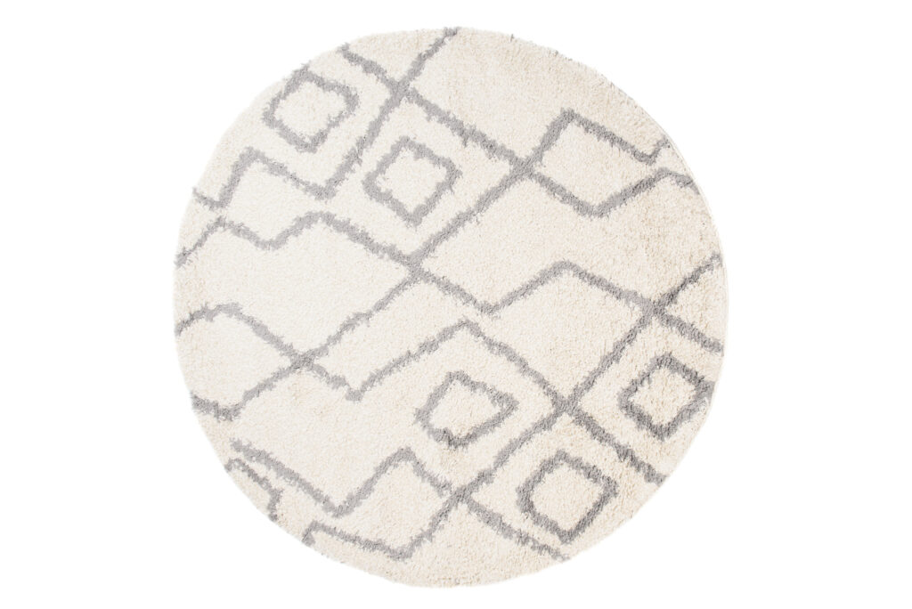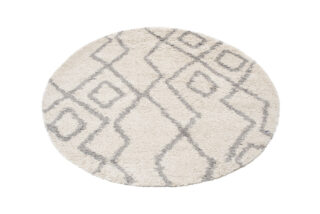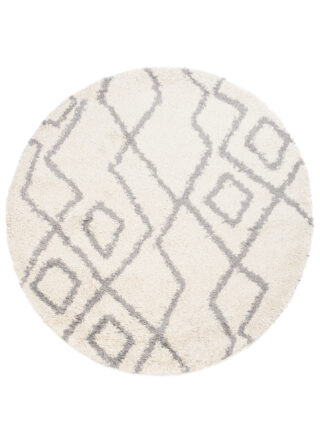 Dywan BohoOkrągły Kremowy ZygZaki Shaggy