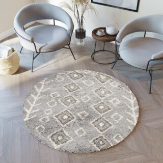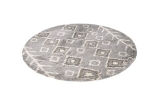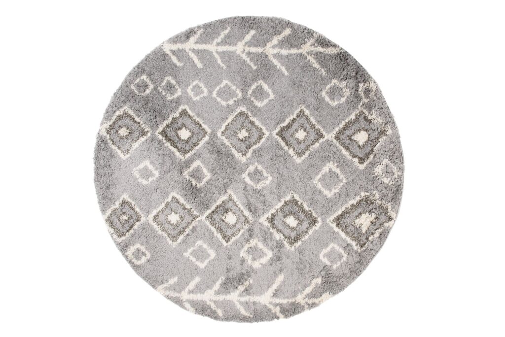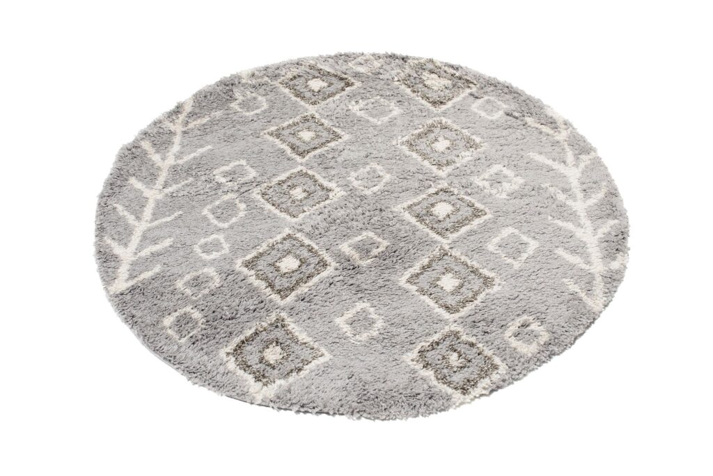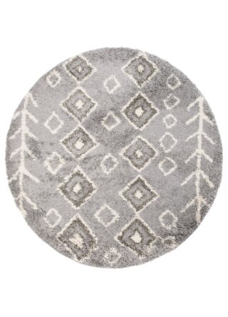 Dywan BohoOkrągły Szary Etniczny Shaggy