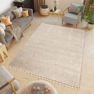 Dywan Bohoz Frędzlami Beżowy Shaggy