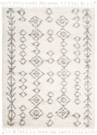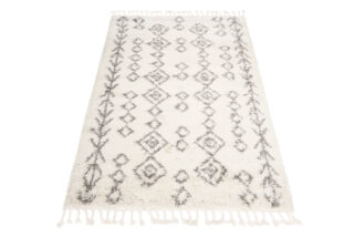 Dywan Bohoz Frędzlami Kremowy Geometryczny Shaggy
