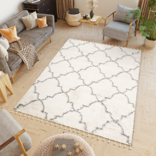 Dywan Bohoz Frędzlami Kremowy Marokańska Koniczyna
