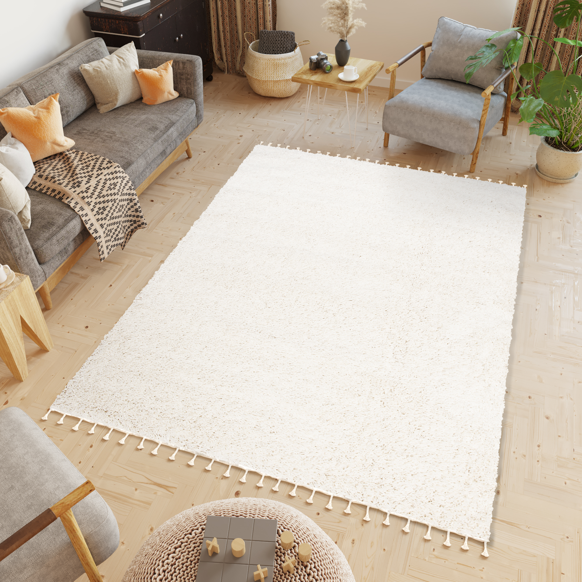 Dywan Bohoz Frędzlami Kremowy Shaggy