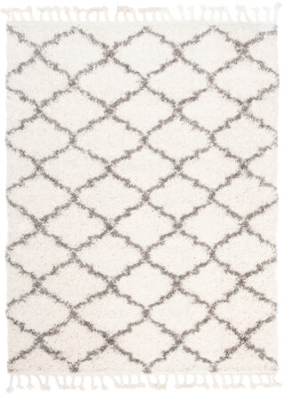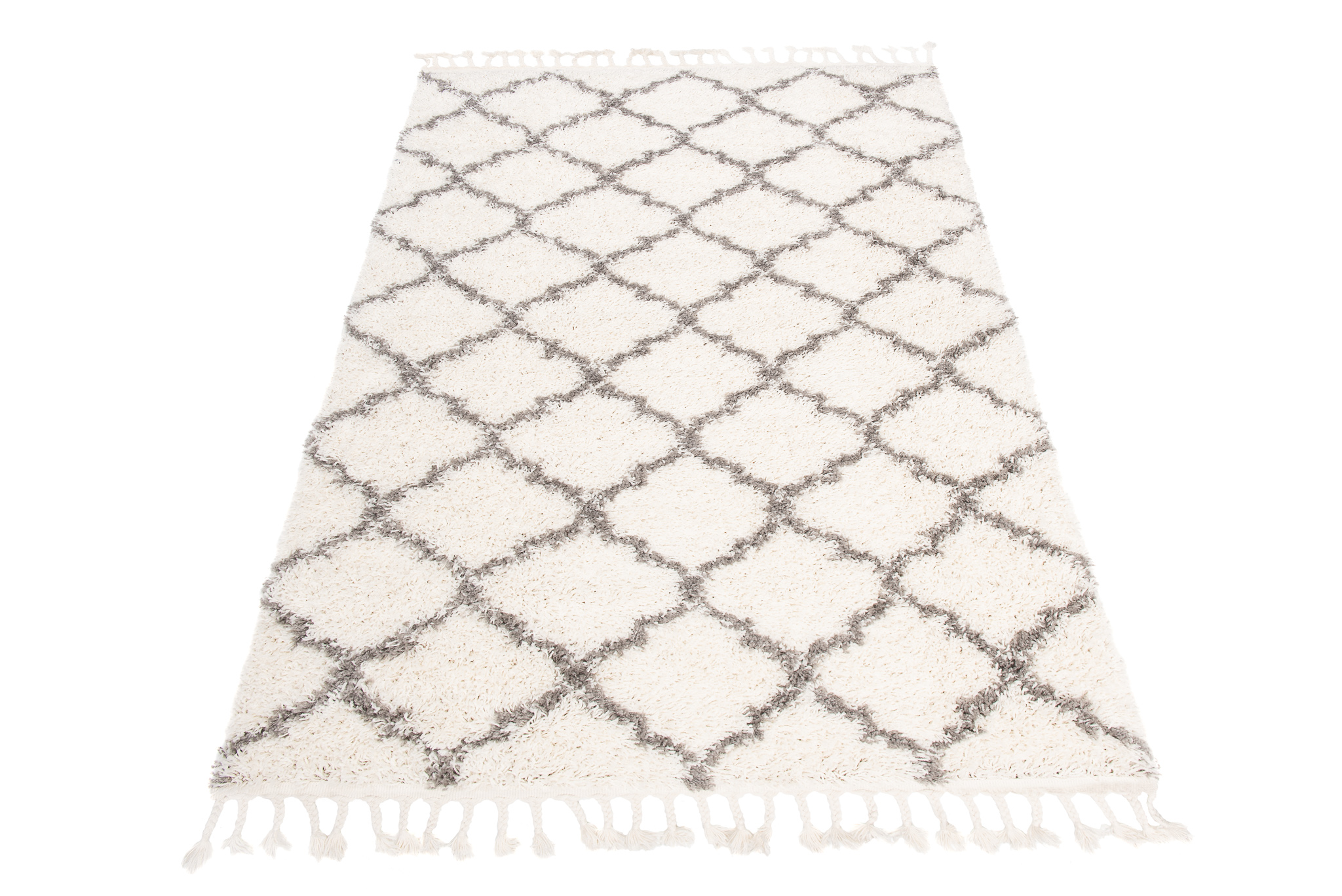 Dywan Bohoz Frędzlami Kremowy Trellis Shaggy