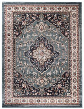Wykonany z wysokiej jakości materiałów, ten niebiesko-kremowy dywan jest odporny na ścieranie i łatwy w utrzymaniu czystości, co czyni go praktycznym rozwiązaniem do codziennego użytkowania. Ten dywan to idealny wybór dla osób poszukujących klasycznego, eleganckiego dodatku, który doda wnętrzu szyku i wyjątkowego charakteru.