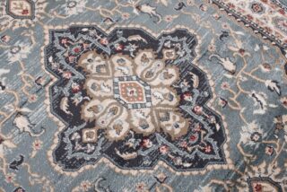 Ten klasyczny dywan w odcieniach niebieskiego i kremowego zachwyca bogatymi ornamentami, które przywodzą na myśl wzory inspirowane tradycją wschodnią. Niebiesko-kremowy dywan z ornamentami wprowadza do wnętrza elegancję i ponadczasowy styl, idealnie komponując się z aranżacjami w stylu klasycznym oraz vintage. Misternie zaprojektowane wzory dodają mu wyrafinowania, czyniąc go ozdobą każdego pomieszczenia – od salonu po gabinet. Niebieskie akcenty na kremowym tle dywanu tworzą harmonijny kontrast, który ożywia przestrzeń, a jednocześnie nie dominuje nad innymi elementami wystroju. Najlepiej prezentuje się na drewnianych podłogach w ciepłych odcieniach.