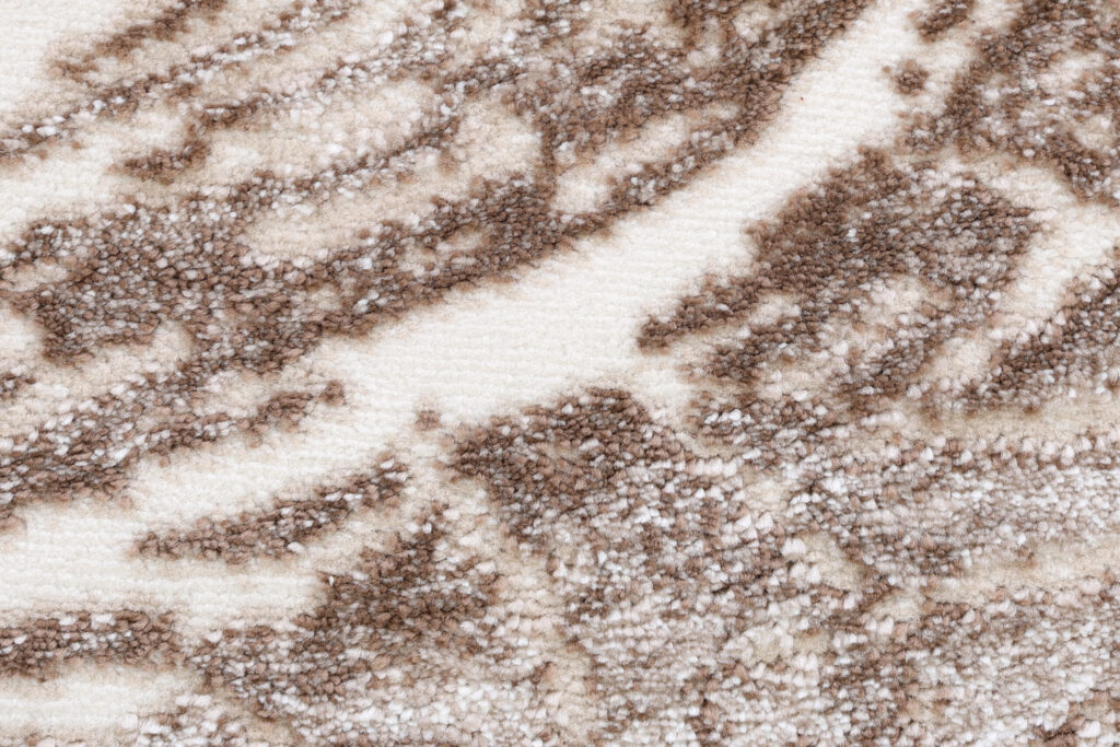 Dywan Como zachwyca wyjątkowym wzorem nawiązującym do naturalnych słojów drewna, wprowadzając do wnętrza ciepło i harmonię. Wykonany z mieszanki poliestru i polipropylenu, charakteryzuje się krótkim, miękkim włosiem o dwupoziomowej strukturze, co gwarantuje trwałość i komfort użytkowania. Certyfikat OEKO-TEX potwierdza, że produkt jest bezpieczny i przyjazny dla środowiska. Dzięki łatwości w czyszczeniu, dywan jest doskonałym rozwiązaniem dla codziennych przestrzeni mieszkalnych.