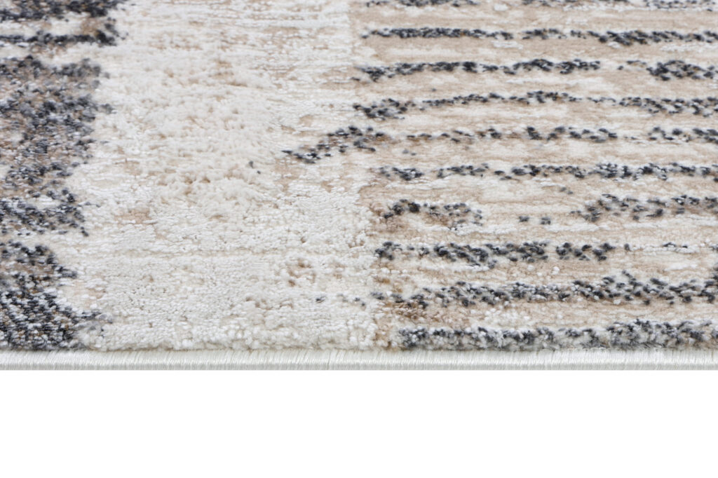 Jego wzór w odcieniach beżu, szarości i ciepłych brązów nadaje wnętrzom harmonii i wprowadza przytulny klimat, idealnie wpisując się w różne aranżacje.