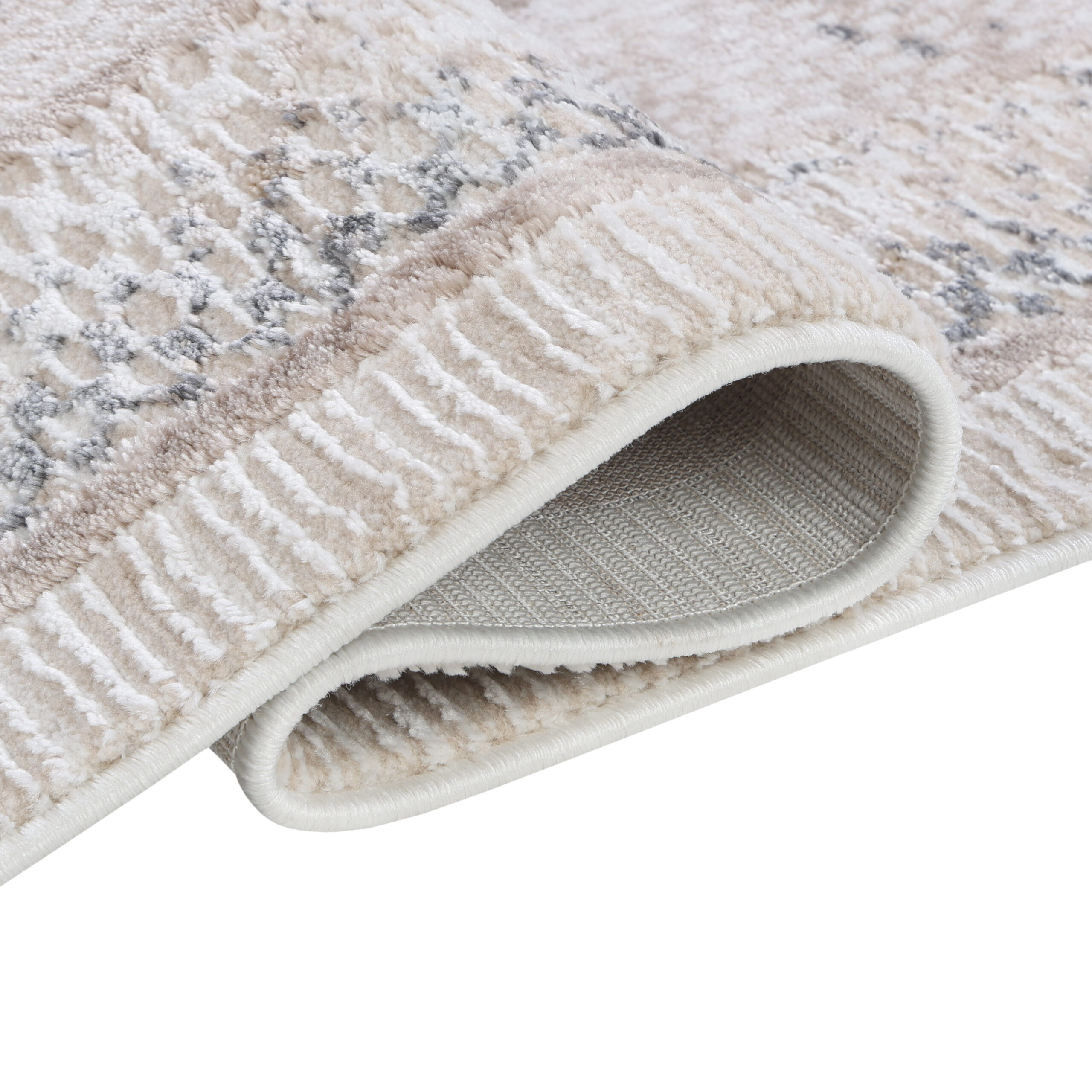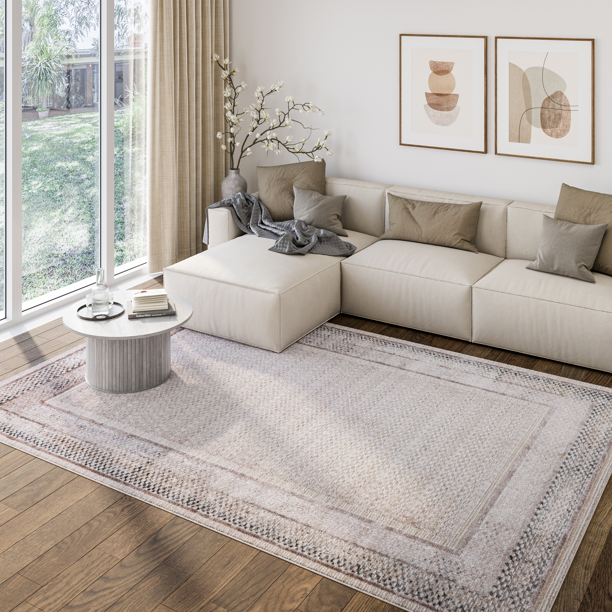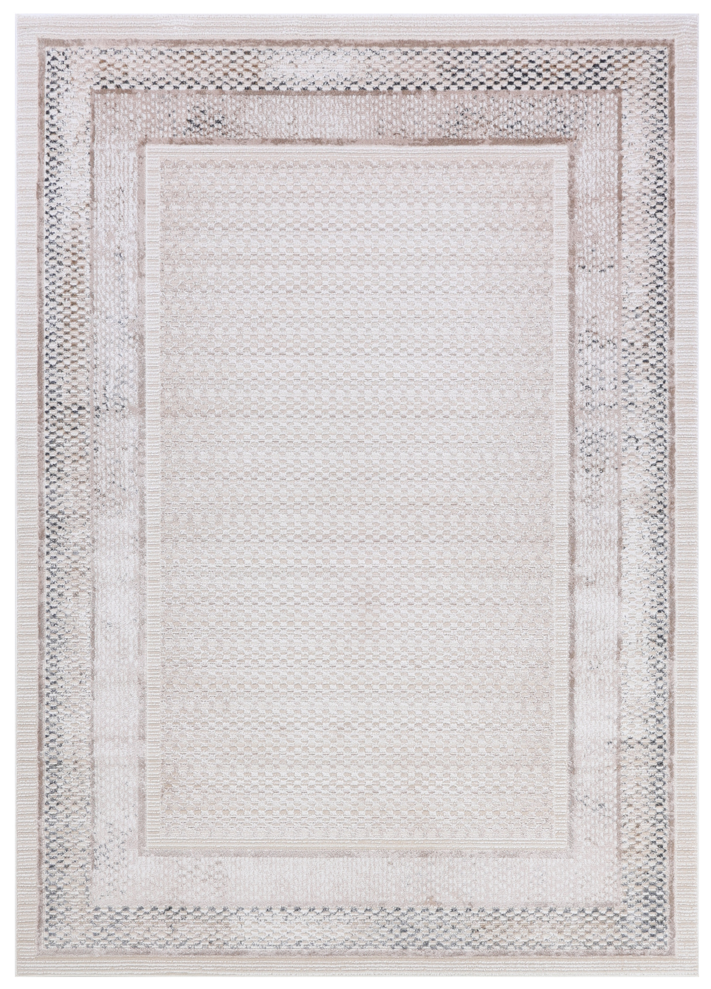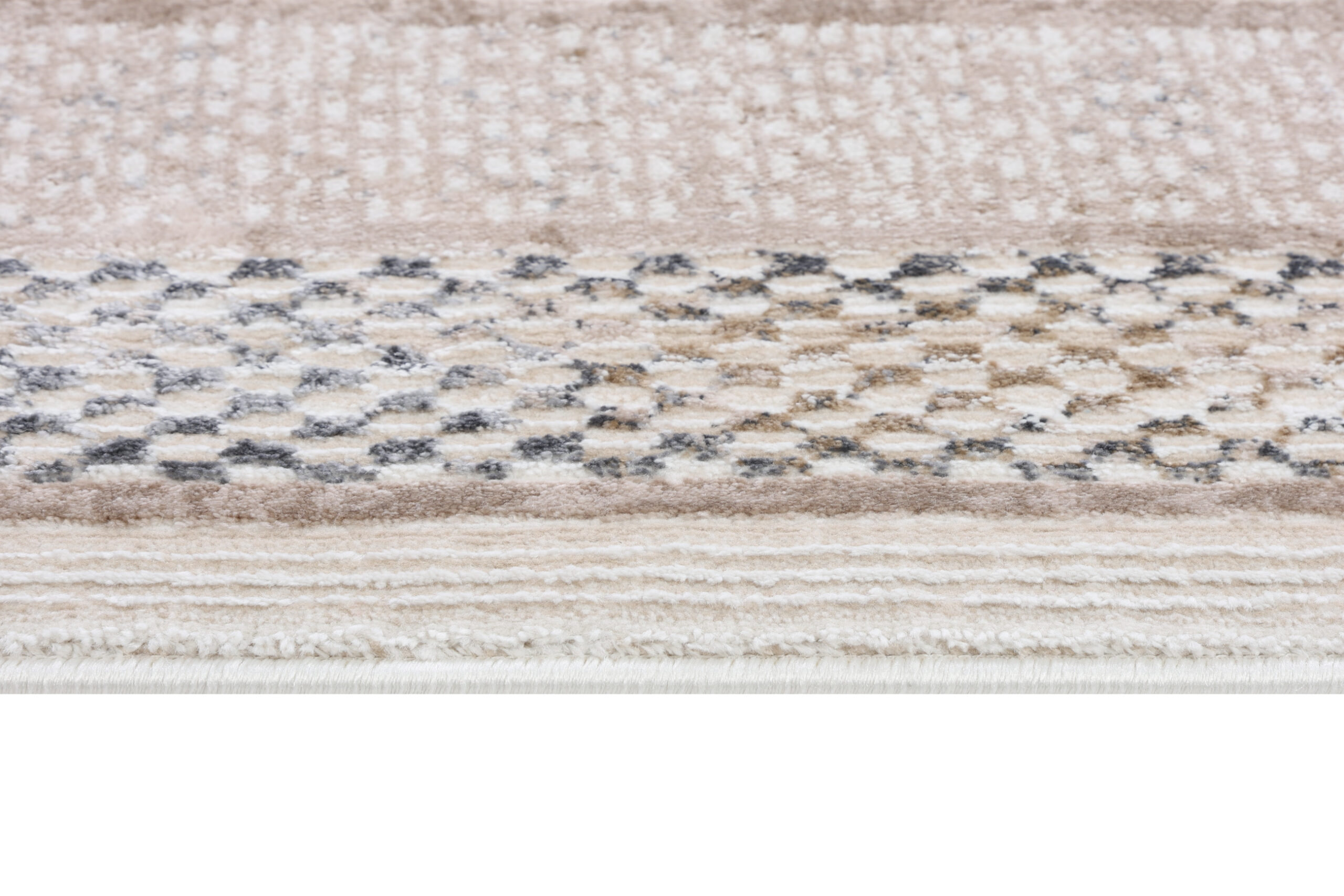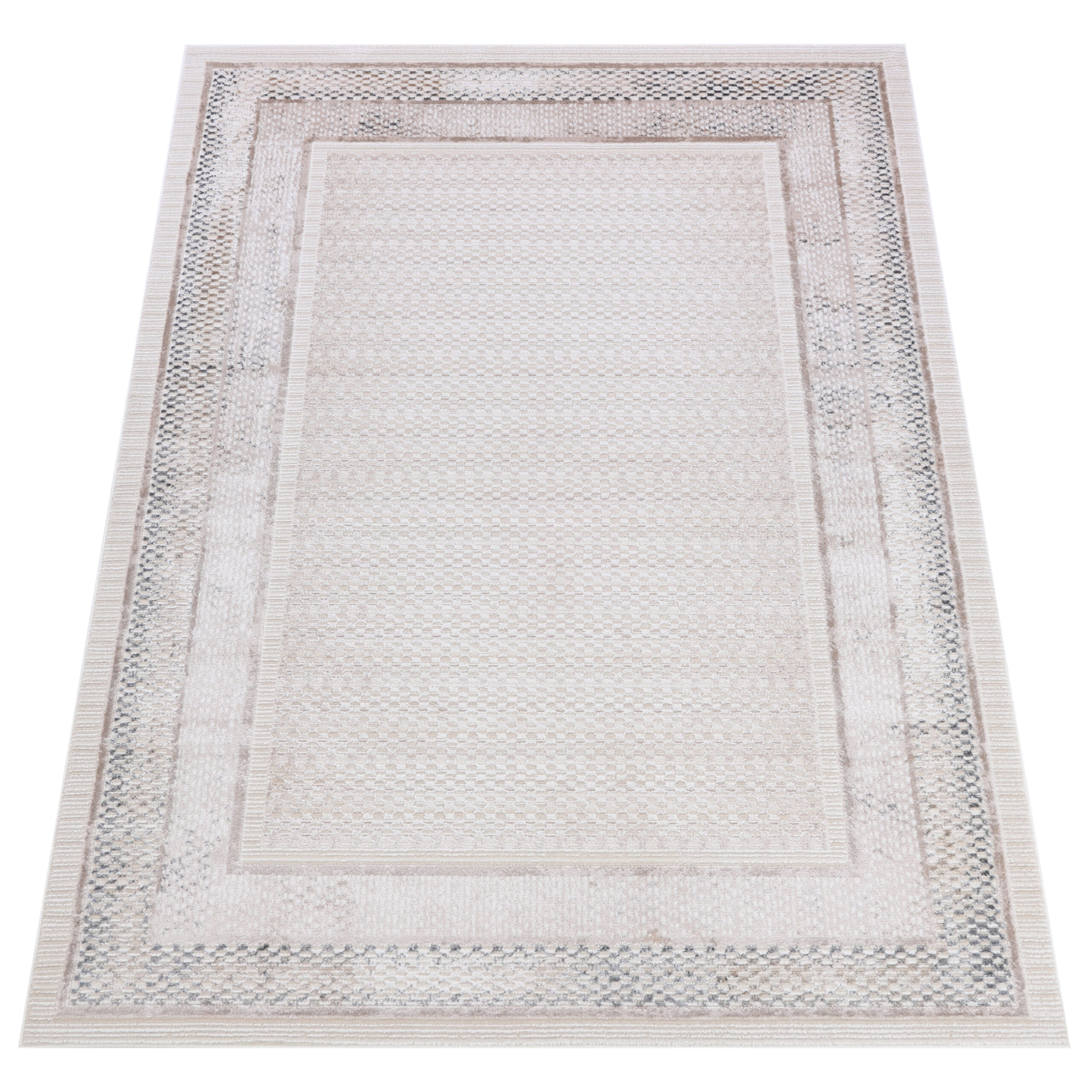 Subtelny wzór ramowy w odcieniach kremu, beżu i delikatnej szarości dodaje wnętrzom lekkości i elegancji, wprowadzając harmonię i ciepło.