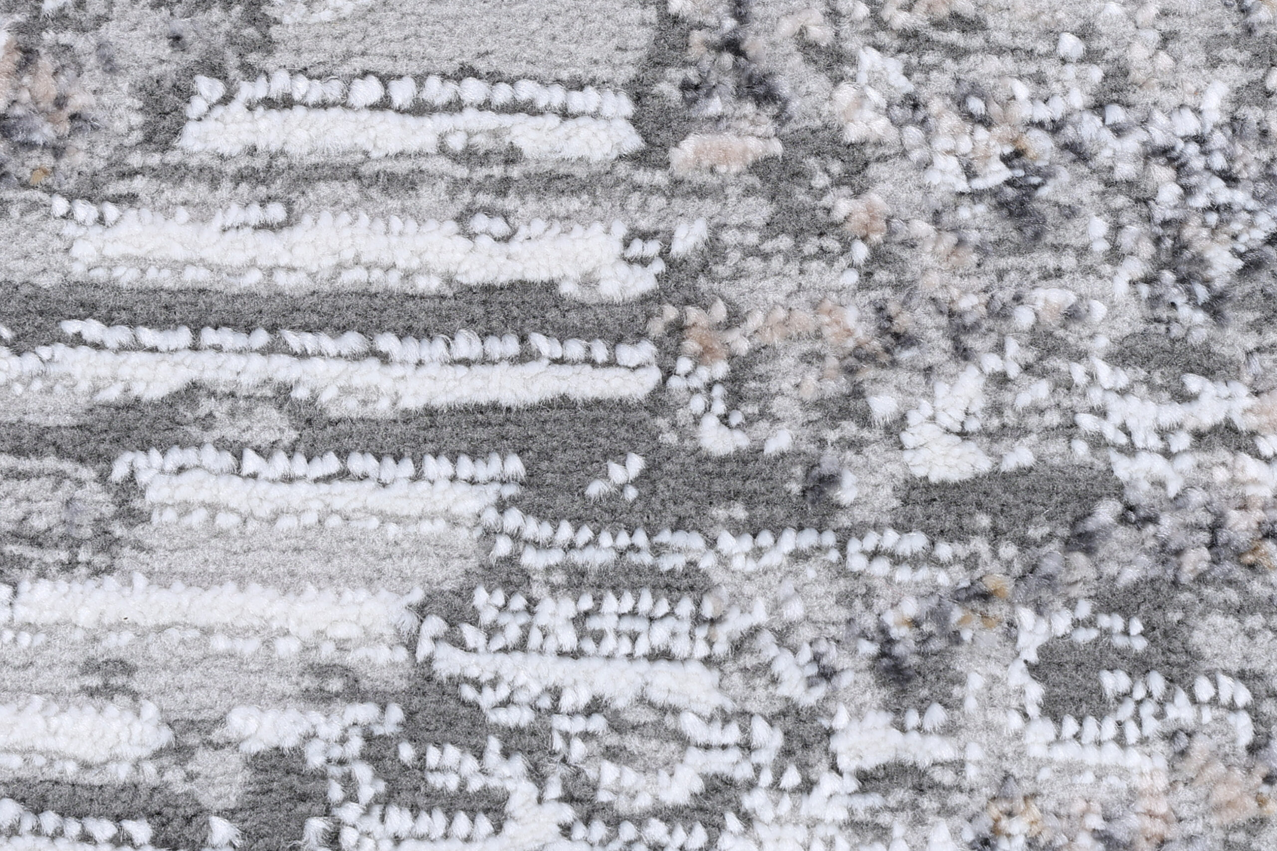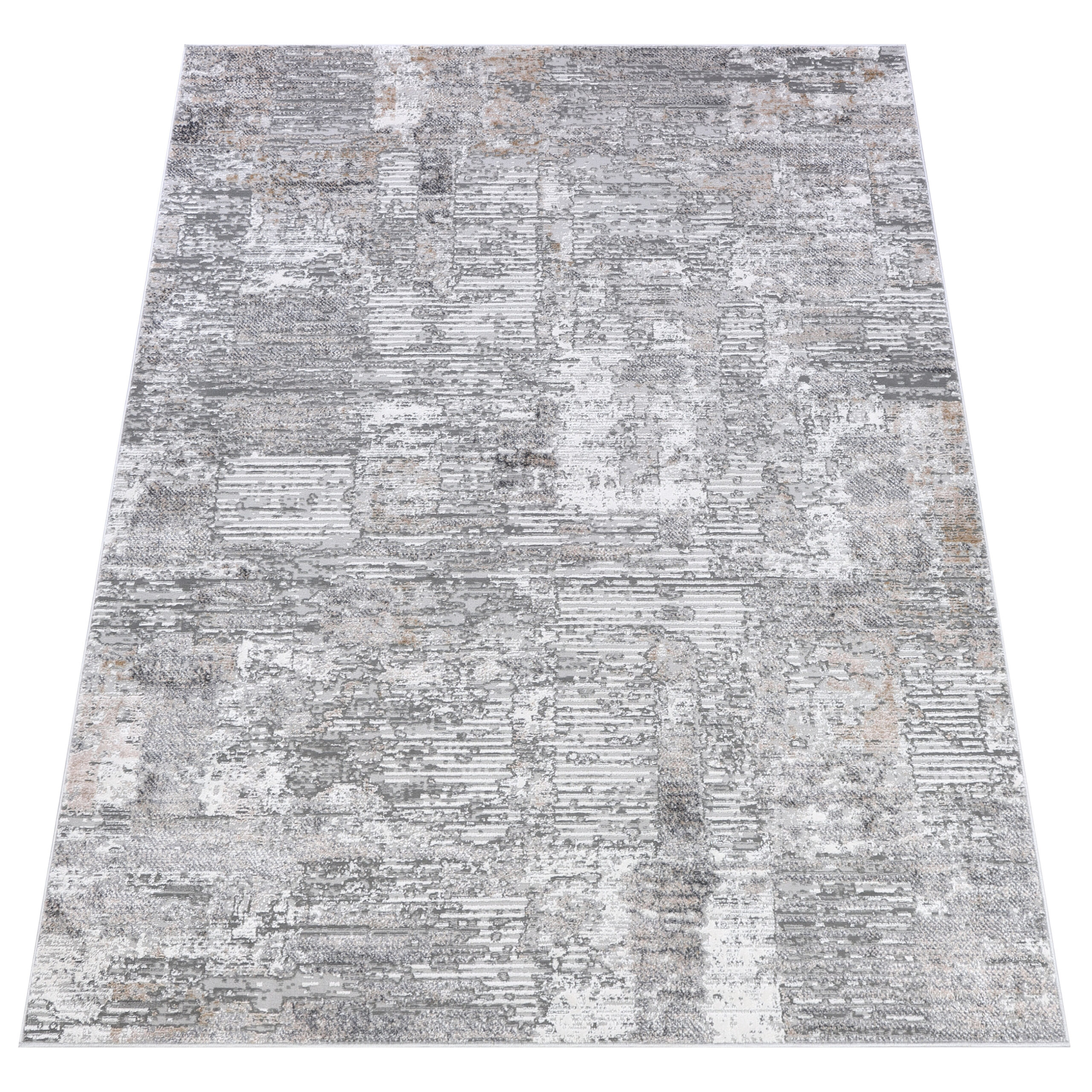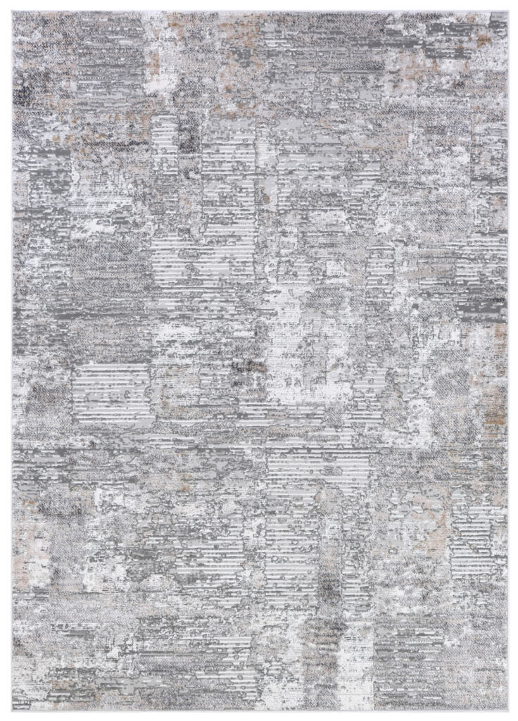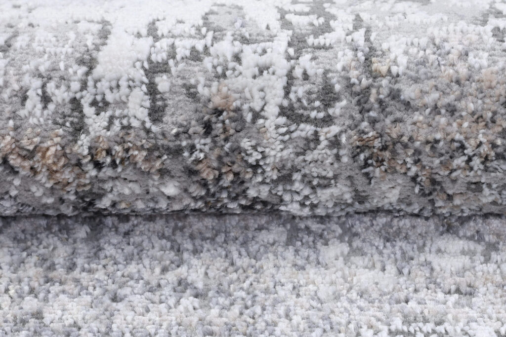 Wzór o surowej teksturze, w odcieniach szarości z delikatnymi beżowymi akcentami, idealnie wpisuje się w estetykę minimalistyczną i industrialną.