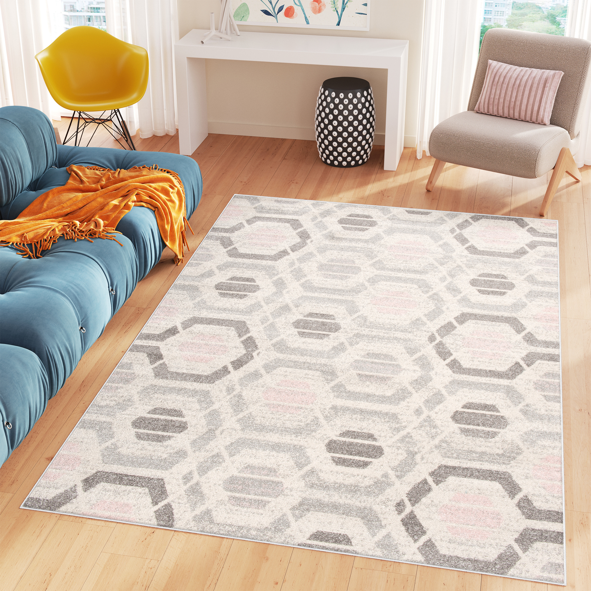 Dywan CosmoSzary Różowy Sześciokąty
