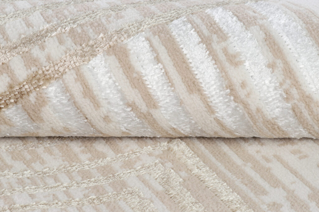 • Wzór: Geometryczne linie w odcieniach beżu, złota i kremu, które tworzą nowoczesny, a zarazem stylowy efekt.