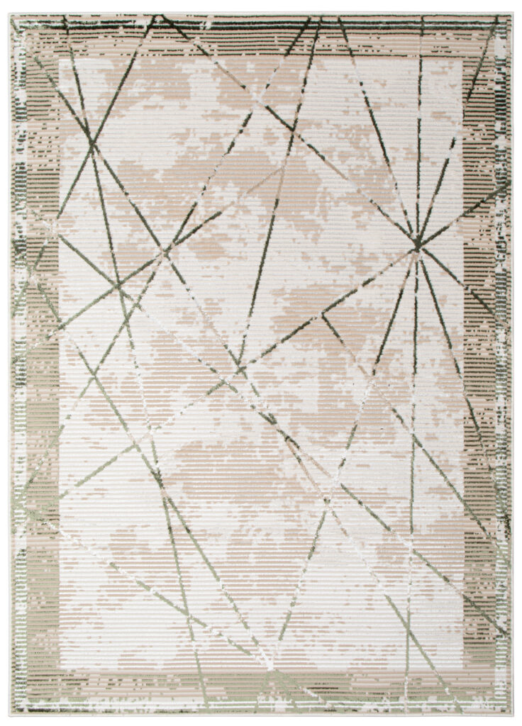 Dywan CrystalZielony Beżowy Ramka Geometryczny Efekt 3D