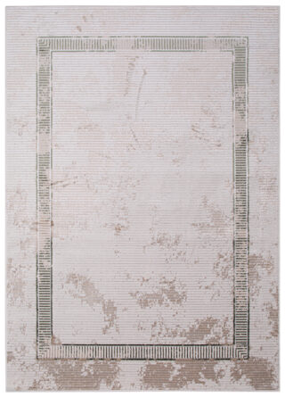 Dywan CrystalZielony Beżowy Ramka Przetarcia Efekt 3D
