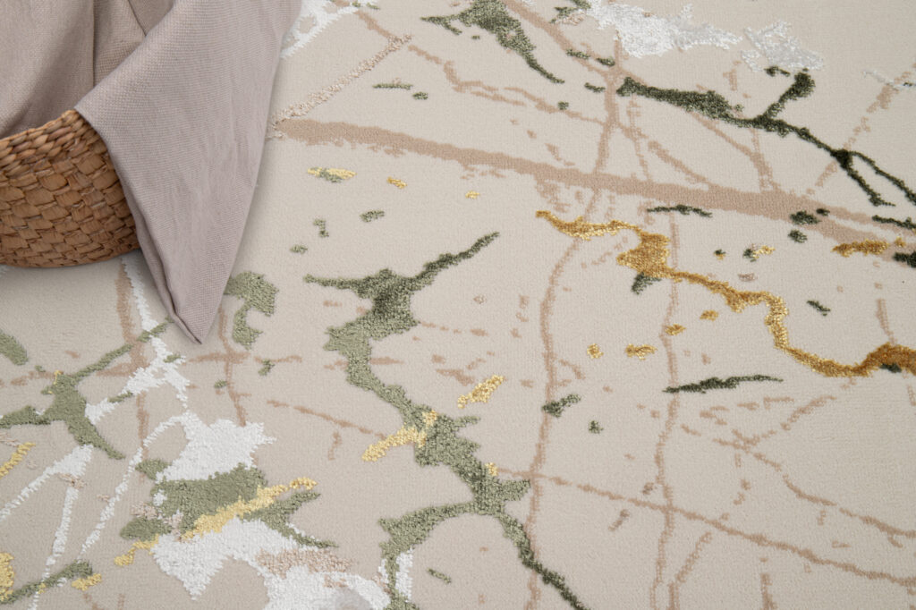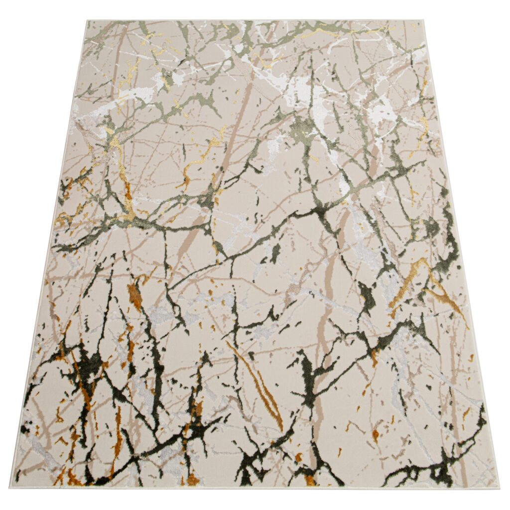 Dywan CrystalZielony Kremowy Abstrakcyjny Marmur Efekt 3D