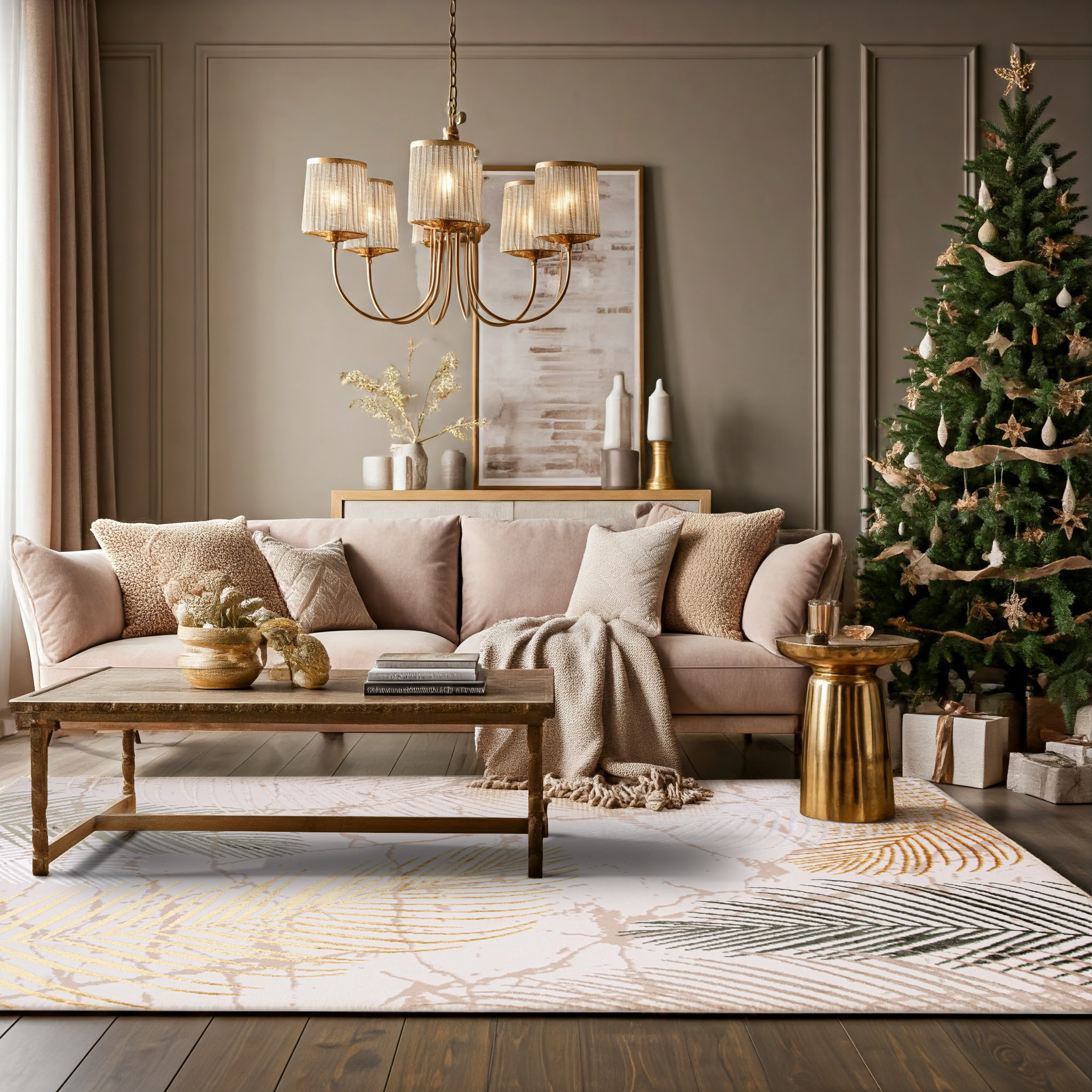 Ten dywan w odcieniach beżu i złota to ozdoba inspirowana naturą. Dzięki subtelnemu wzorowi liści na dywanie, przyciąga on wzrok, wprowadzając do wnętrza powiew świeżości. Efekt 3D wzmaga wrażenie głębi, sprawiając, że wzór liści nabiera przestrzenności i lekkości. Beżowy dywan z motywem liści idealnie pasuje do wnętrz w stylu boho oraz skandynawskim, gdzie naturalne motywy i kolory harmonijnie współgrają z resztą aranżacji, tworząc przyjemną, relaksującą atmosferę. Ze względu na z złote detale będzie również doskonale pasował do pomieszczeń w stylu glamour.