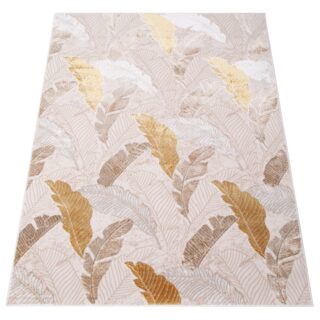 Dywan CrystalZłoty Brązowy Beżowy Liście Efekt 3D