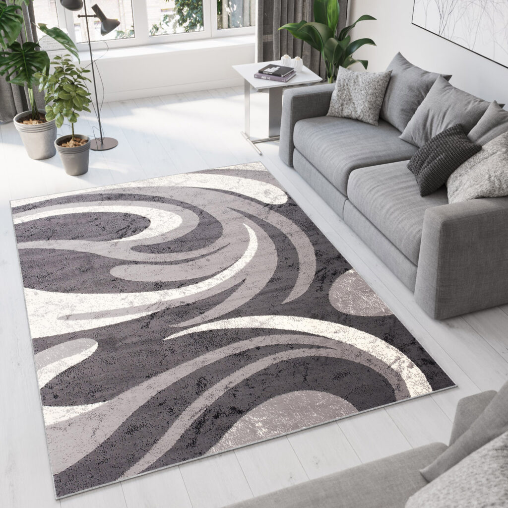 Ten szary dywan z abstrakcyjnym wzorem cienkich fal to idealny wybór dla osób ceniących nowoczesny i subtelny design. Stonowana szarość dywanu w połączeniu z delikatnym falistym wzorem nadaje mu elegancji i tworzy wrażenie ruchu, co sprawia, że wnętrze nabiera głębi i dynamiki. Szary dywan w fale doskonale sprawdzi się we wnętrzach w stylu skandynawskim, minimalistycznym, a także loftowym, gdzie jego subtelny wzór podkreśli prostotę i nowoczesność aranżacji. Dobrze pasuje zarówno do jasnych podłóg, jak i ciemniejszych powierzchni, tworząc spójną i stylową całość.