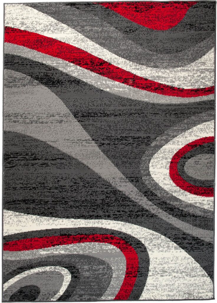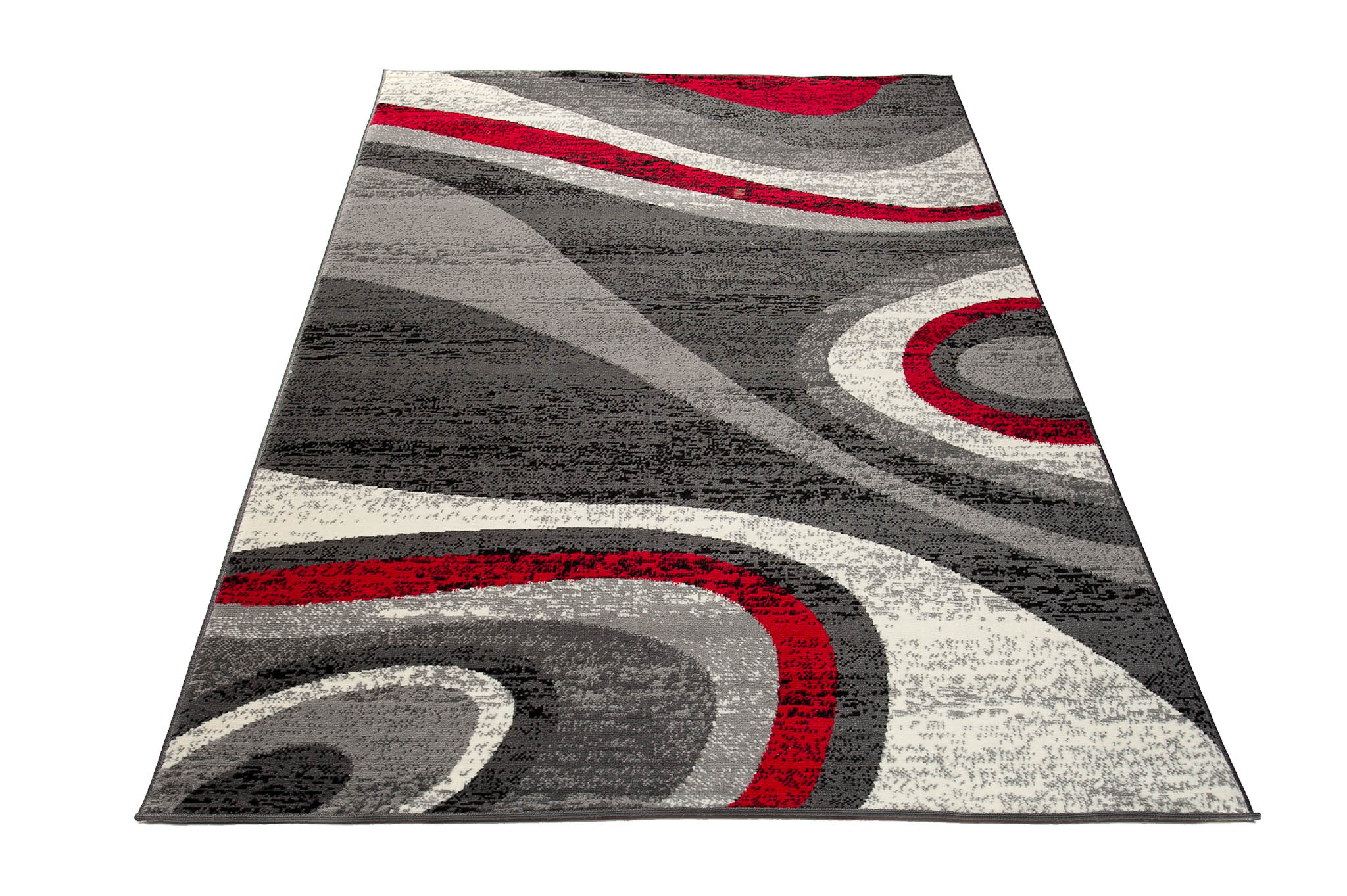 Dywan DreamNowoczesny Ciemny Szary Czerwony Fale