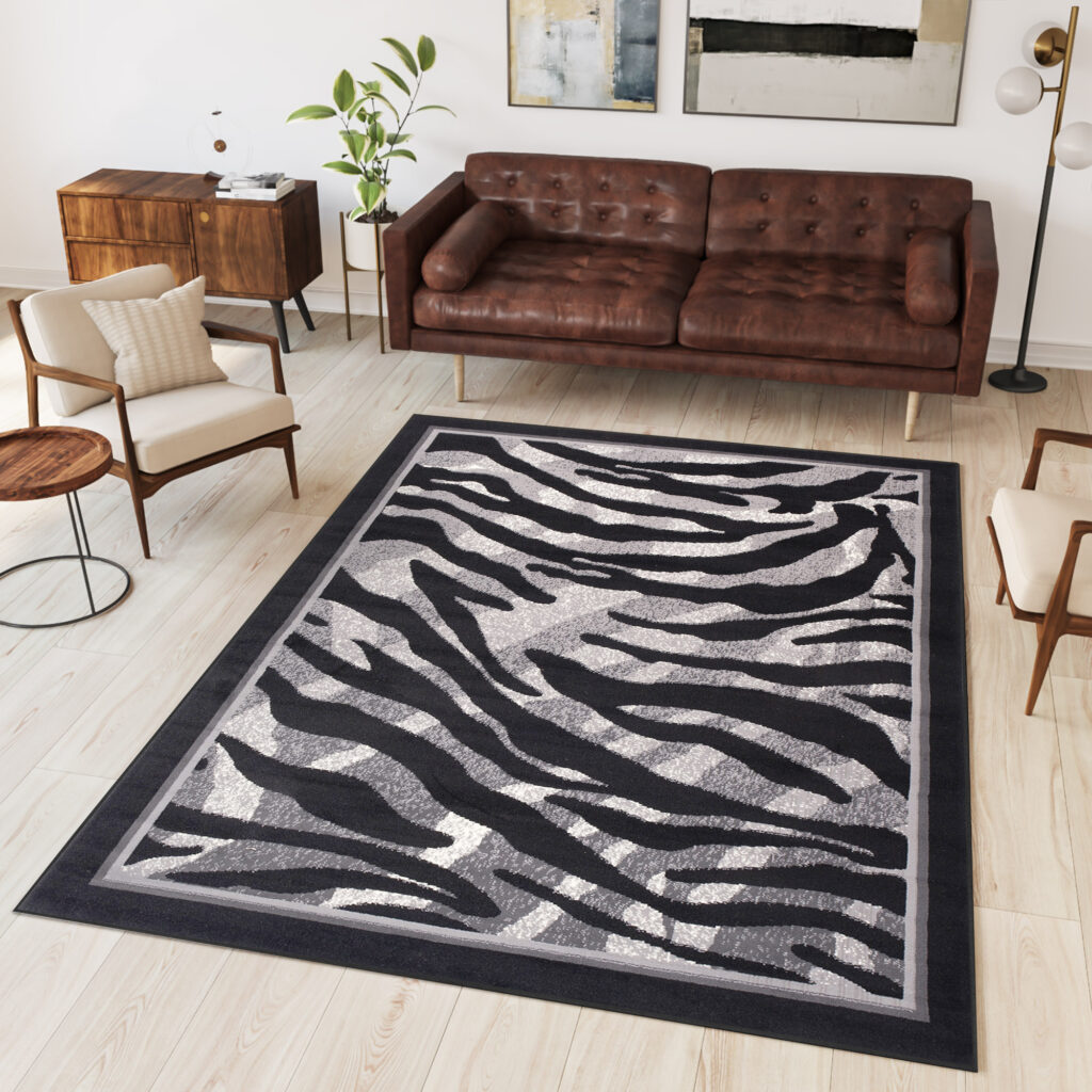 Dywan DreamNowoczesny Szary Czarny Print Zwierzęcy