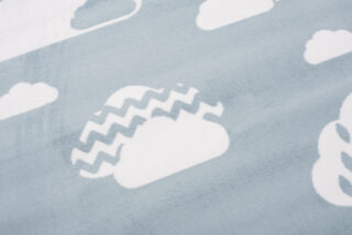 - Motyw białych chmurek – idealny do pokoju dziecięcego