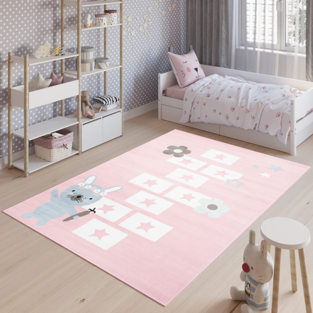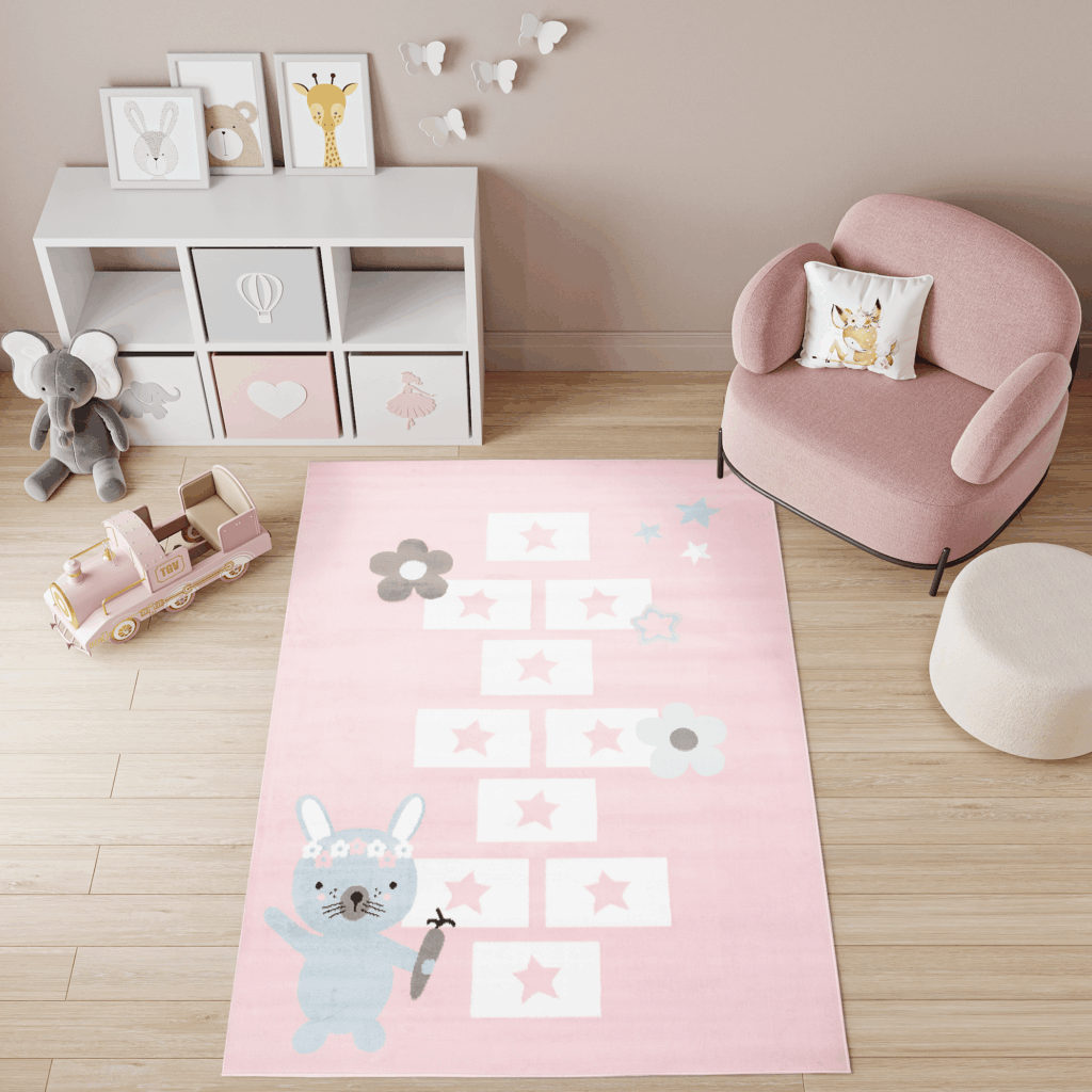 Dywan DziecięcyBaby Różowy Królik Gra w Klasy