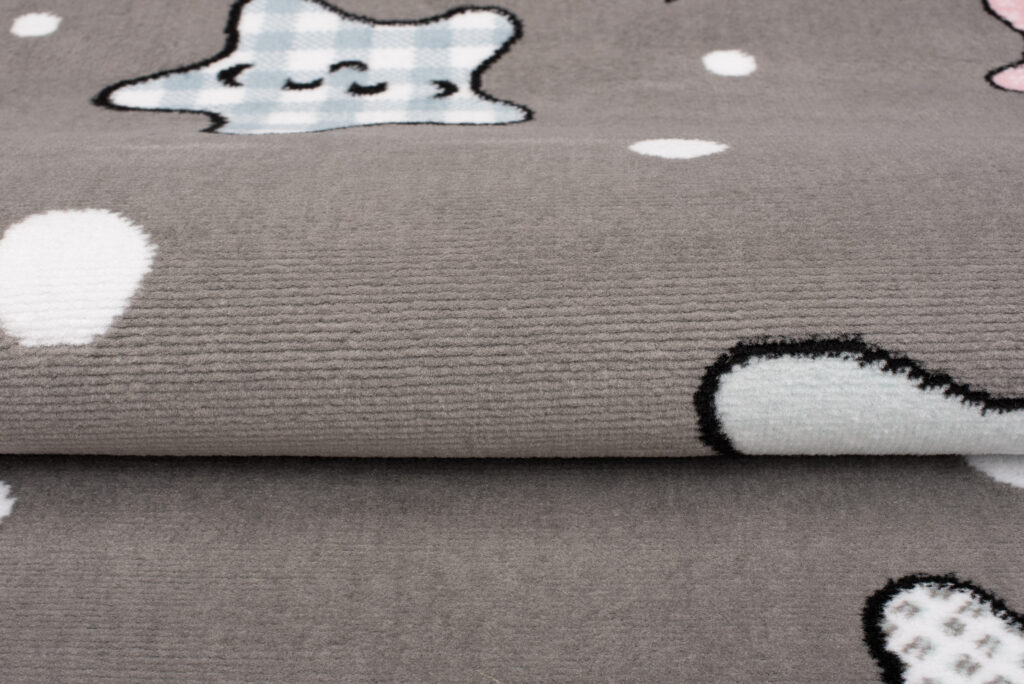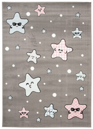 Wprowadź odrobinę magii i przytulności do pokoju swojego dziecka dzięki temu urokliwemu dywanowi z motywem gwiazdek. Krótkowłosy dywan, utrzymany w delikatnych odcieniach szarości, różu i błękitu, jest łatwy do czyszczenia, co czyni go idealnym wyborem do pokoju niemowlaka lub małego dziecka. Dzięki certyfikatowi OEKO-TEX możesz mieć pewność, że materiały użyte do produkcji są bezpieczne i przyjazne dla zdrowia najmłodszych.