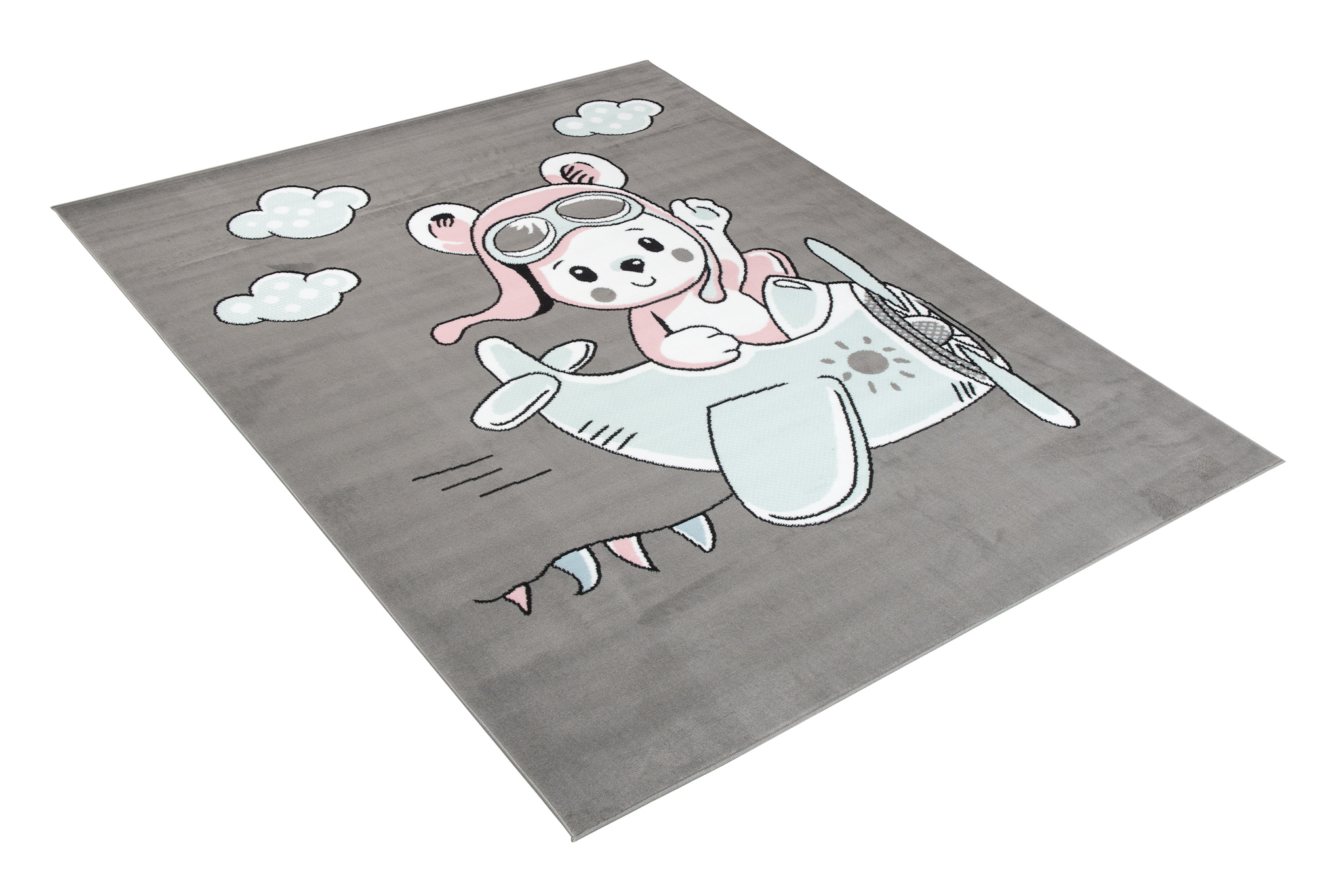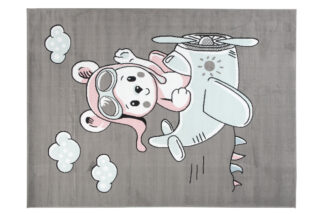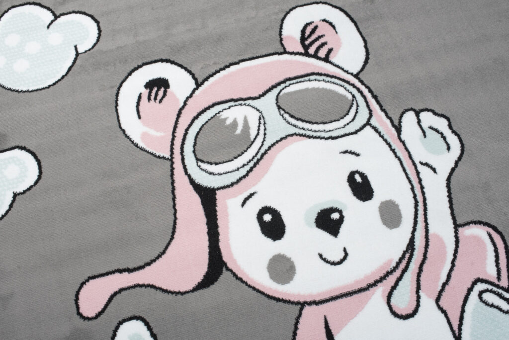 Przenieś swojego malucha w świat przygód dzięki uroczemu dywanowi z motywem misia pilota! Ten krótkowłosy dywan jest doskonały do dziecięcego pokoju – miękki, łatwy do czyszczenia i wykonany z bezpiecznych materiałów z certyfikatem OEKO-TEX. Motyw latającego misia z pastelowymi akcentami na szarym tle dodaje wnętrzu przyjaznego, a zarazem stylowego wyglądu.