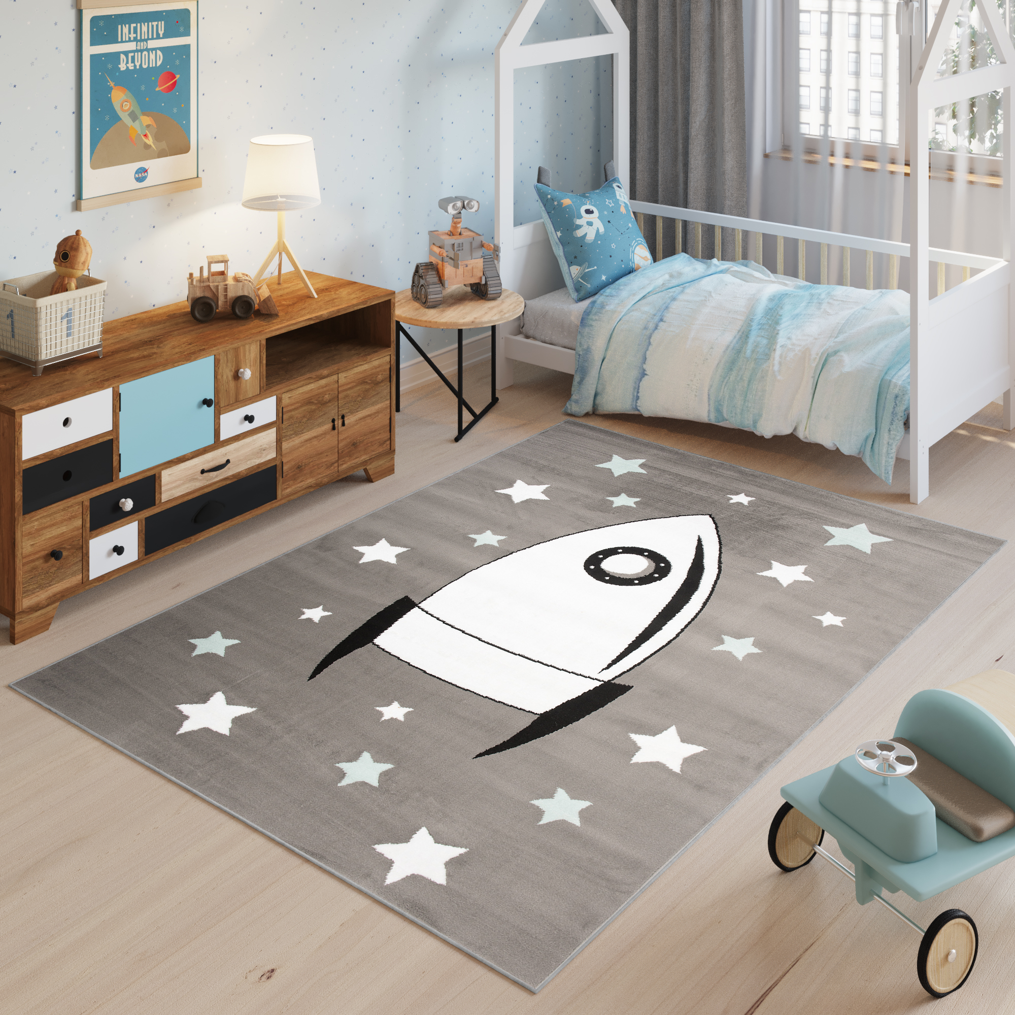 Dywan DziecięcyBaby Szary Rakieta Gwiazdy