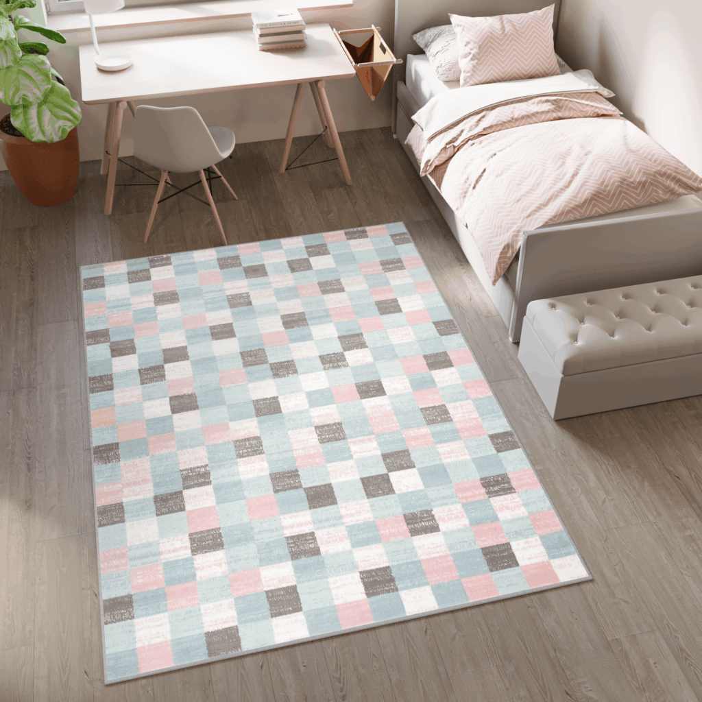Dywan dziecięcy w pastelową kratkę – nowoczesny styl i komfort dla każdego pokoju