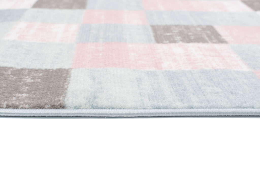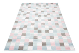 Dywan ten doskonale wkomponuje się w pokój dziecięcy w stylu skandynawskim, nowoczesnym lub minimalistycznym. Jego stonowane pastelowe odcienie różu, błękitu, szarości i bieli świetnie współgrają z jasnymi i naturalnymi meblami, tworząc harmonijną i spokojną przestrzeń. Wzór w kratkę nadaje wnętrzu nowoczesnego charakteru, a jednocześnie jest na tyle uniwersalny, że pasuje do różnorodnych dekoracji i dodatków.
