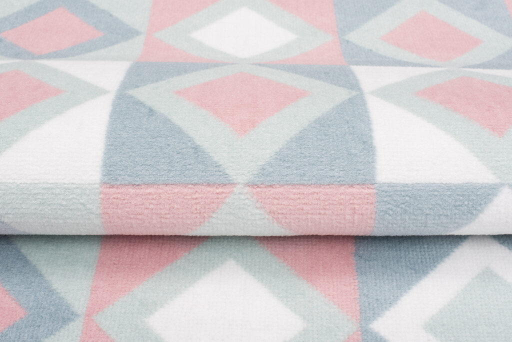 Dywan dziecięcy z geometrycznym wzorem w pastelowych kolorach – nowoczesny akcent do pokoju dziecka