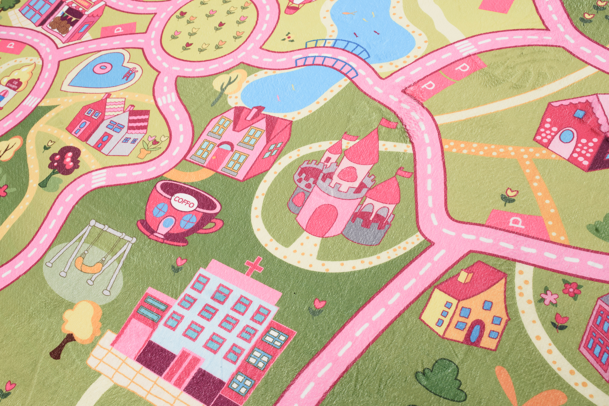 Dywan DziecięcyFlannel Różowy Miasto Ulice