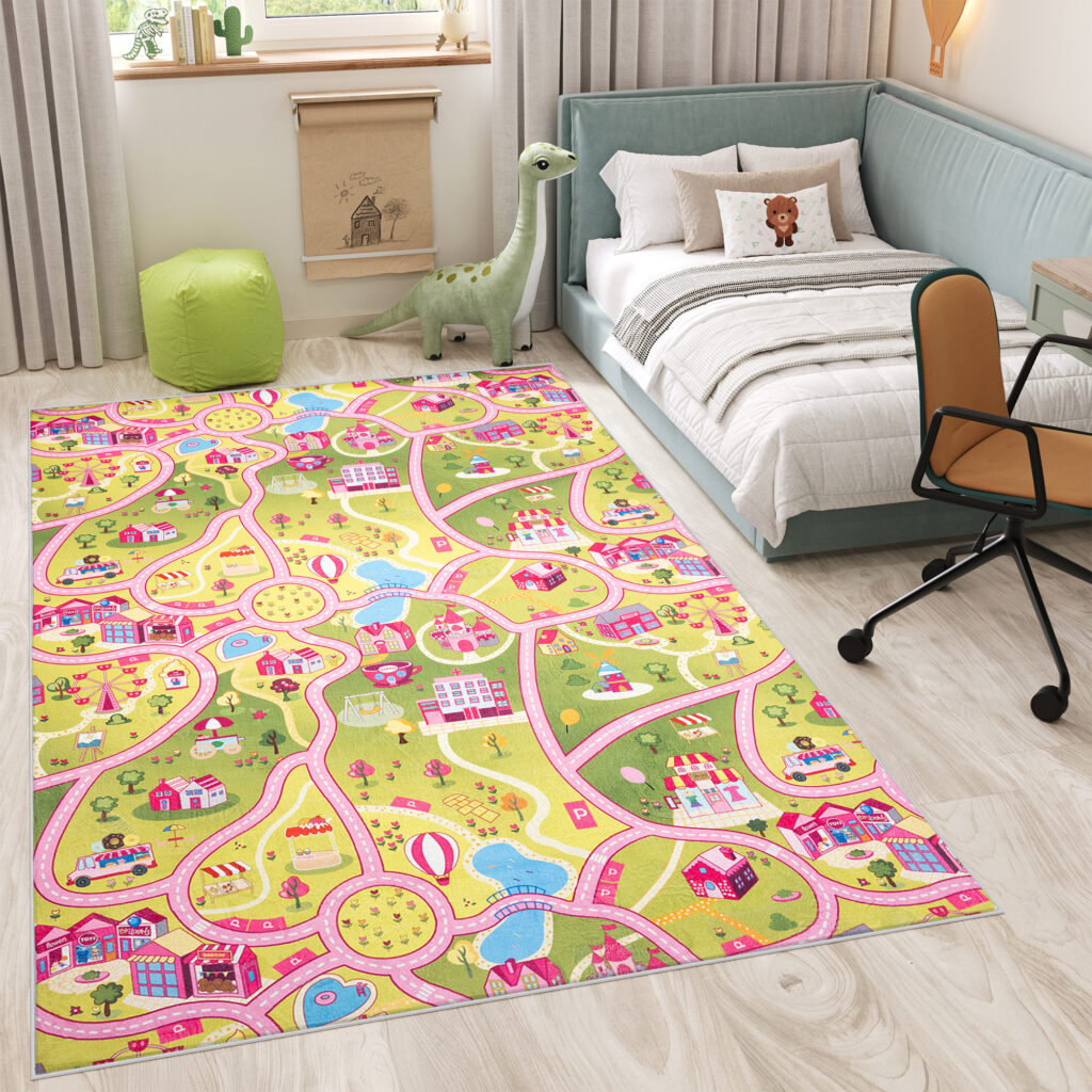 Wyobraź sobie wyjątkowe wzory dywanów, które nie tylko ozdobią pokój Twojego dziecka, ale także zapewnią mu mnóstwo radości i zabawy. Nasze dywany Flannel posiadają interaktywne wzory, takie jak uliczki czy boiska, które zachęcają dzieci do kreatywnej zabawy. Dzięki nim Twoje dziecko może przenieść się w świat wyobraźni, kreując własne historie i przygody.