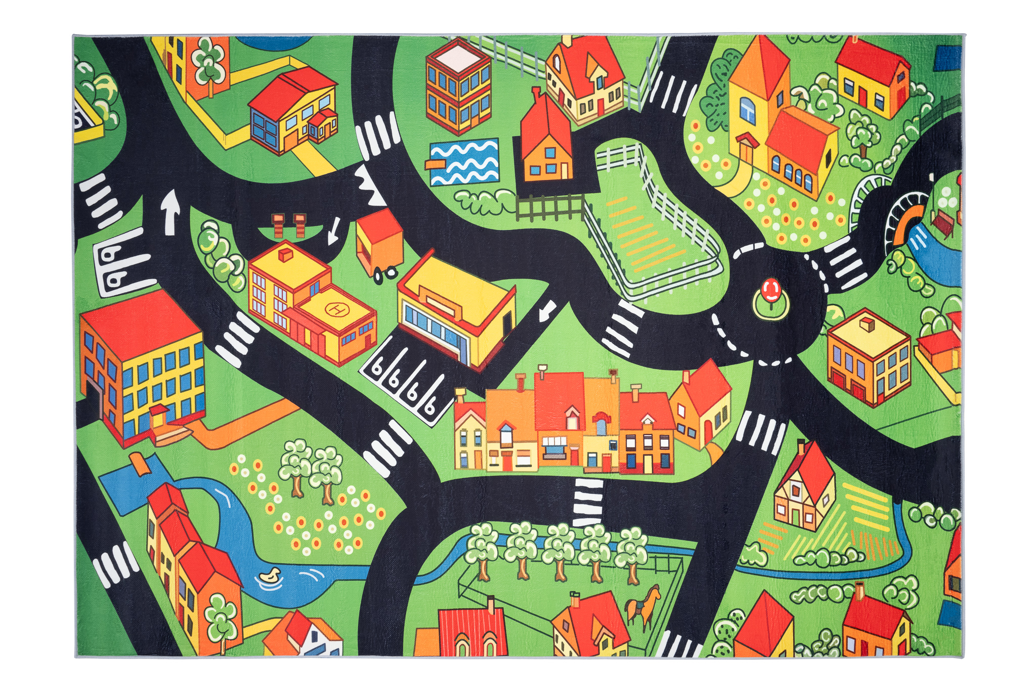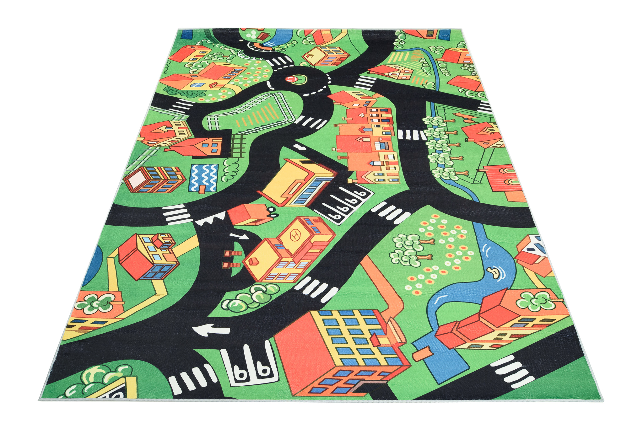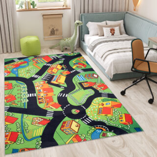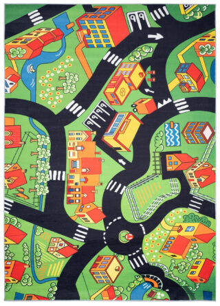 Dywan DziecięcyFlannel Zielony Miasto Ulice