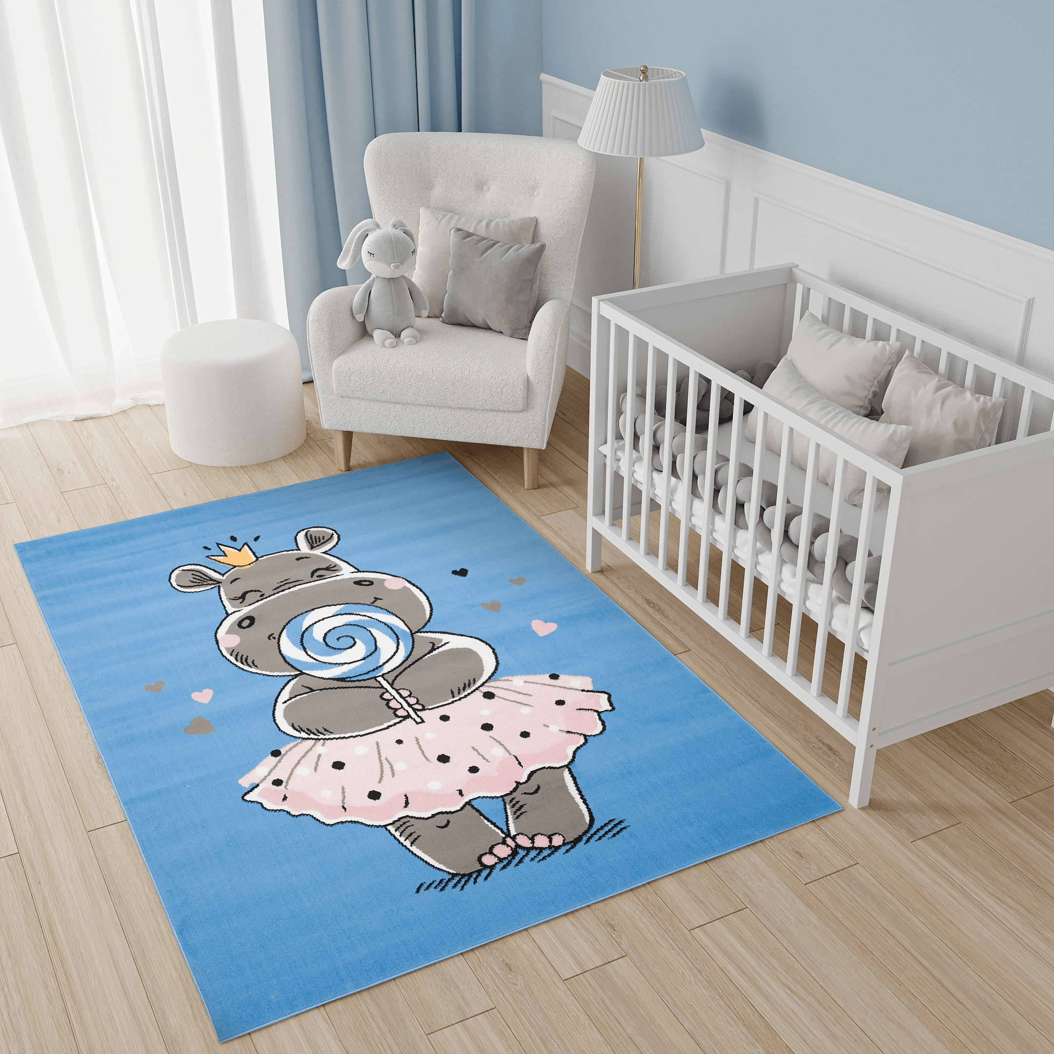 Dywan DziecięcyJolly Niebieski Szary Hipopotam