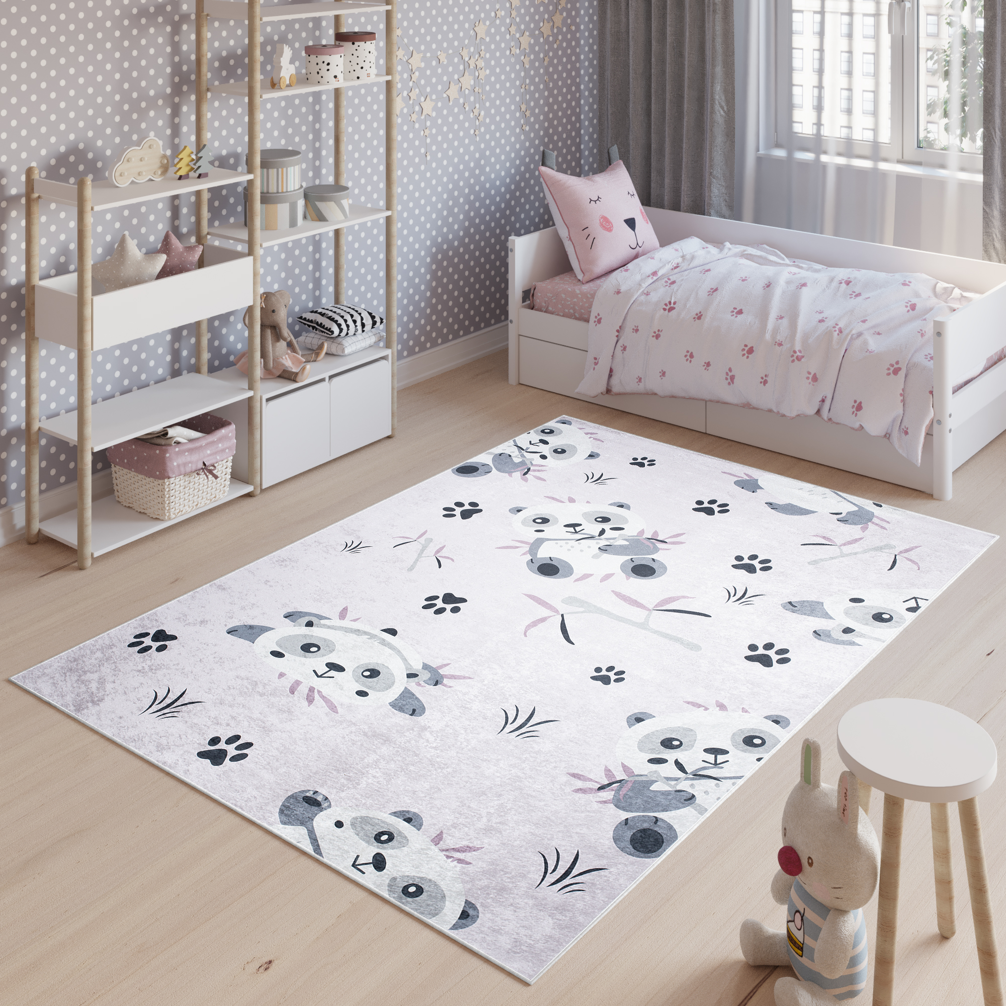 Dywan EmmaAntypoślizgowy Do Prania Różowy Szary Pandy