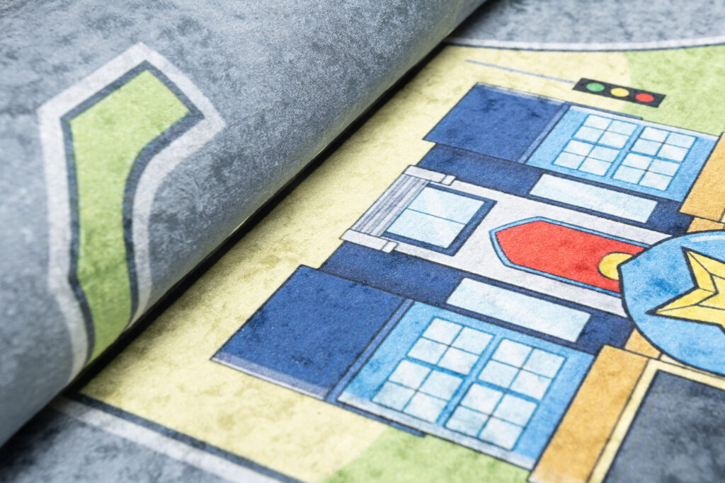 Kolekcja Emma to dywany drukowane, brak klasycznego włosia to coś co czyni je jeszcze bardziej wyjątkowymi. Można je prać w pralce (w temperaturze 30 stopni) i mają antypoślizgowy spód – na wypadek, gdyby Twoje dziecko postanowiło uczynić z dywanu swój nowy plac zabaw. Mimo krótkiego runa, dywan jest przyjemny w dotyku i świetnie izoluje zimno. Dekoracja jest bardzo lekka – ułatwia to sprzątanie, jak i daje możliwość stworzenia kącika do zabawy w prawie każdym miejscu w domu.
