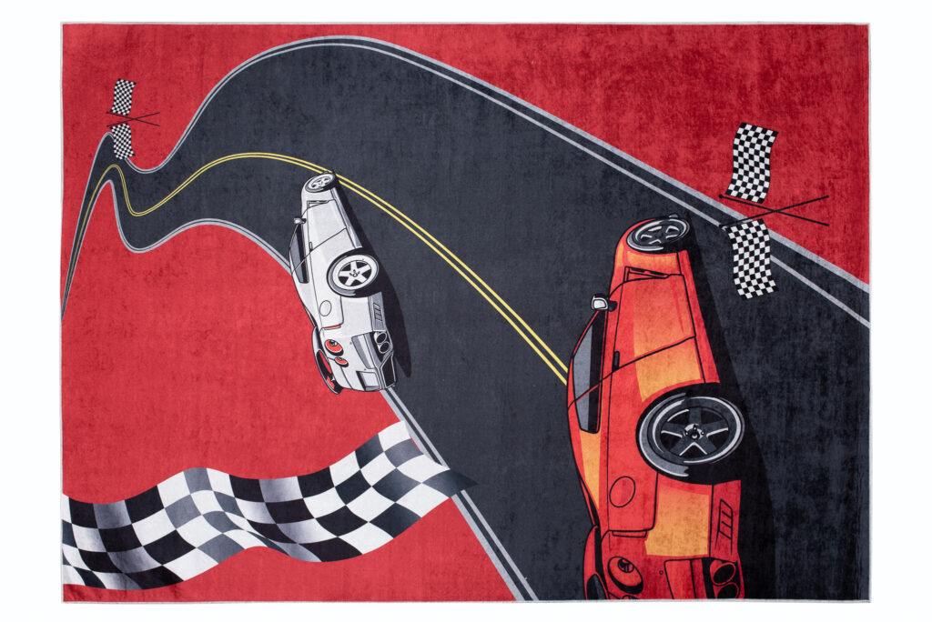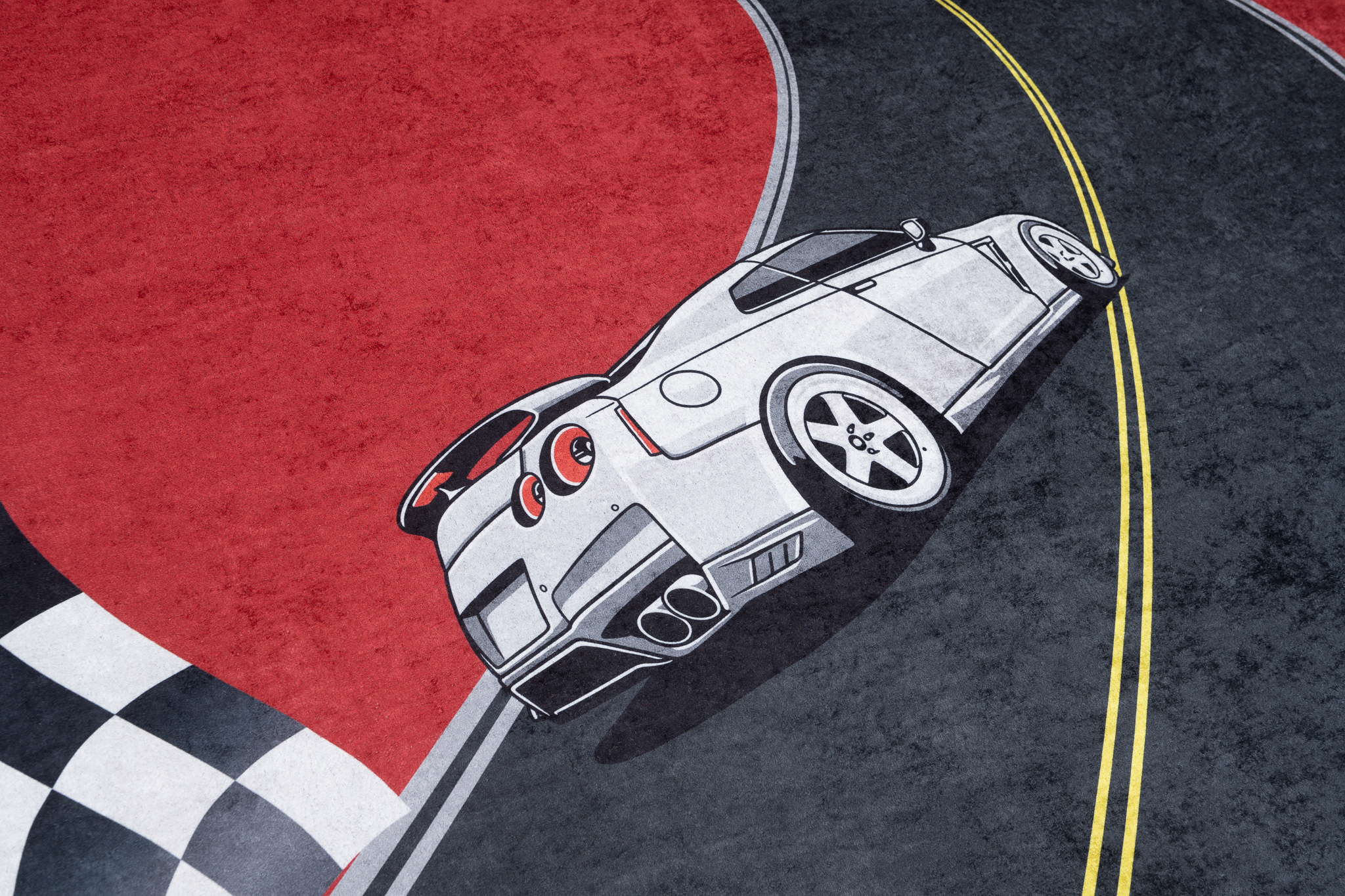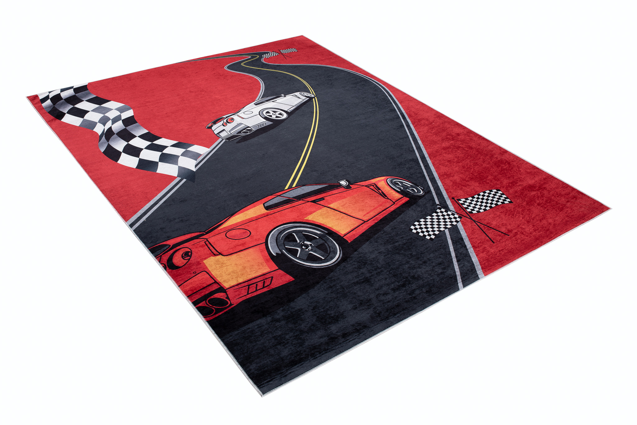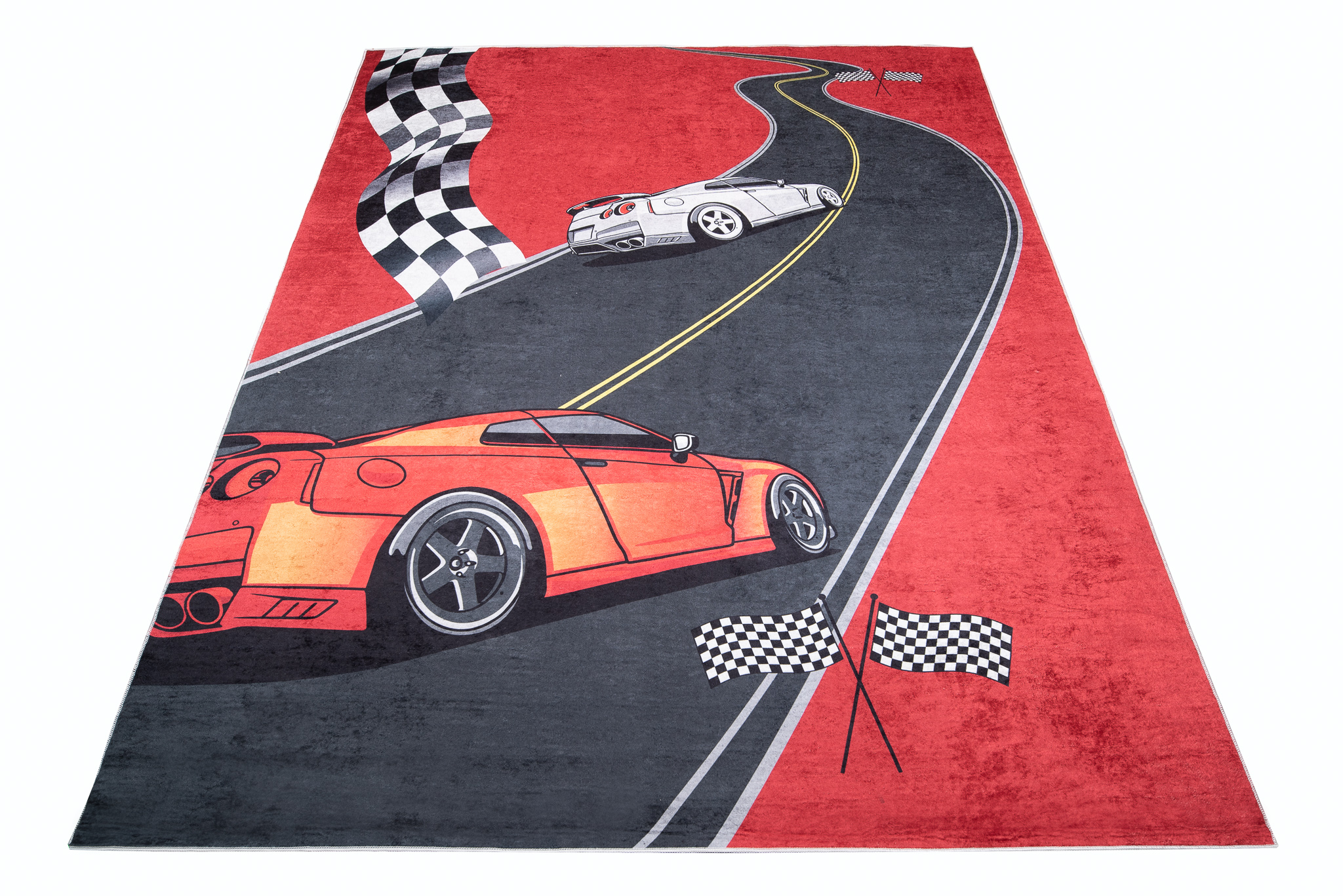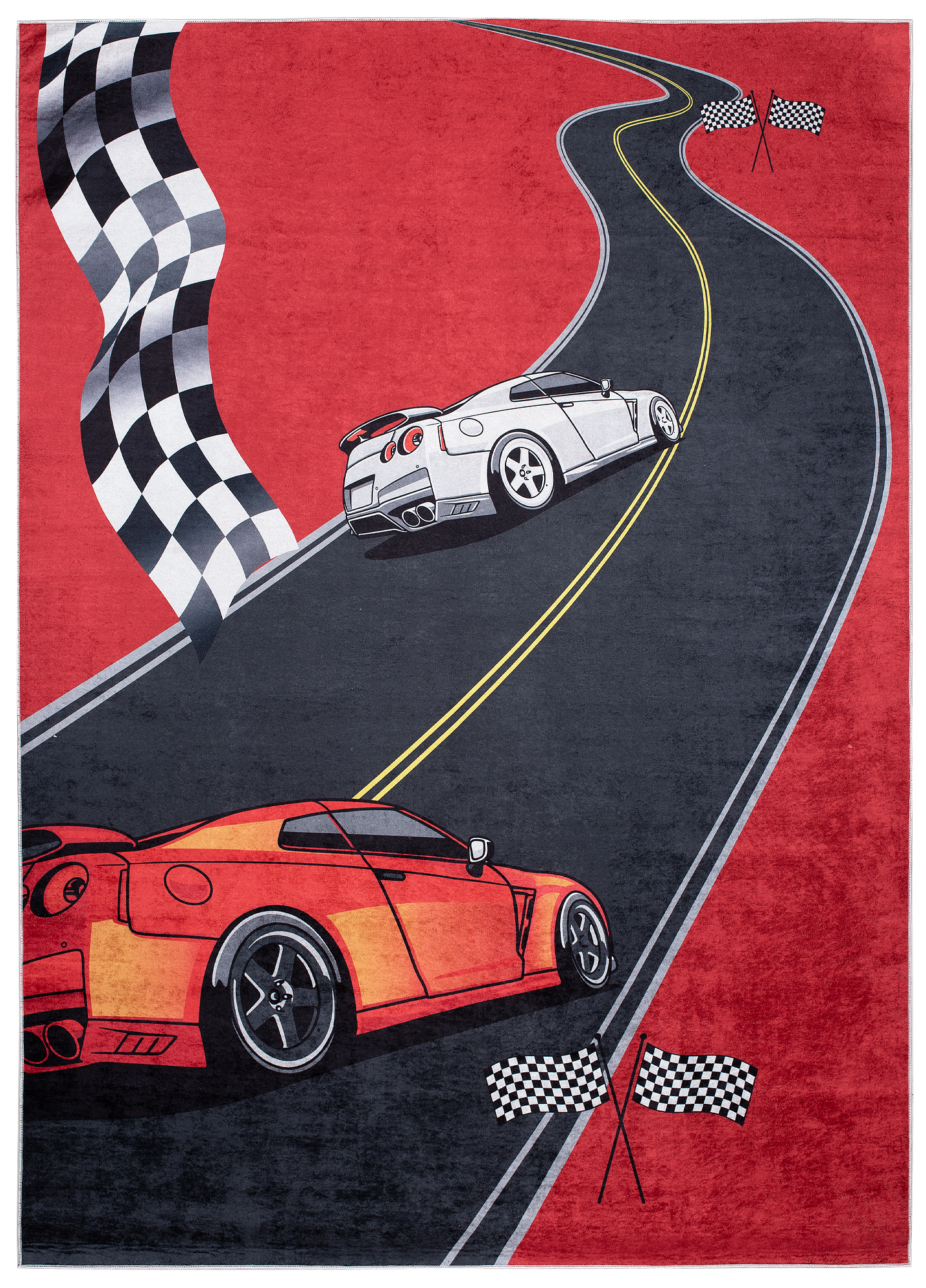 Dywan EmmaDziecięcy Czerwony Czarny Samochody Antypoślizgowy