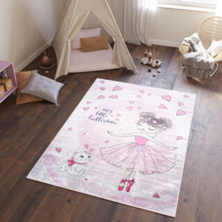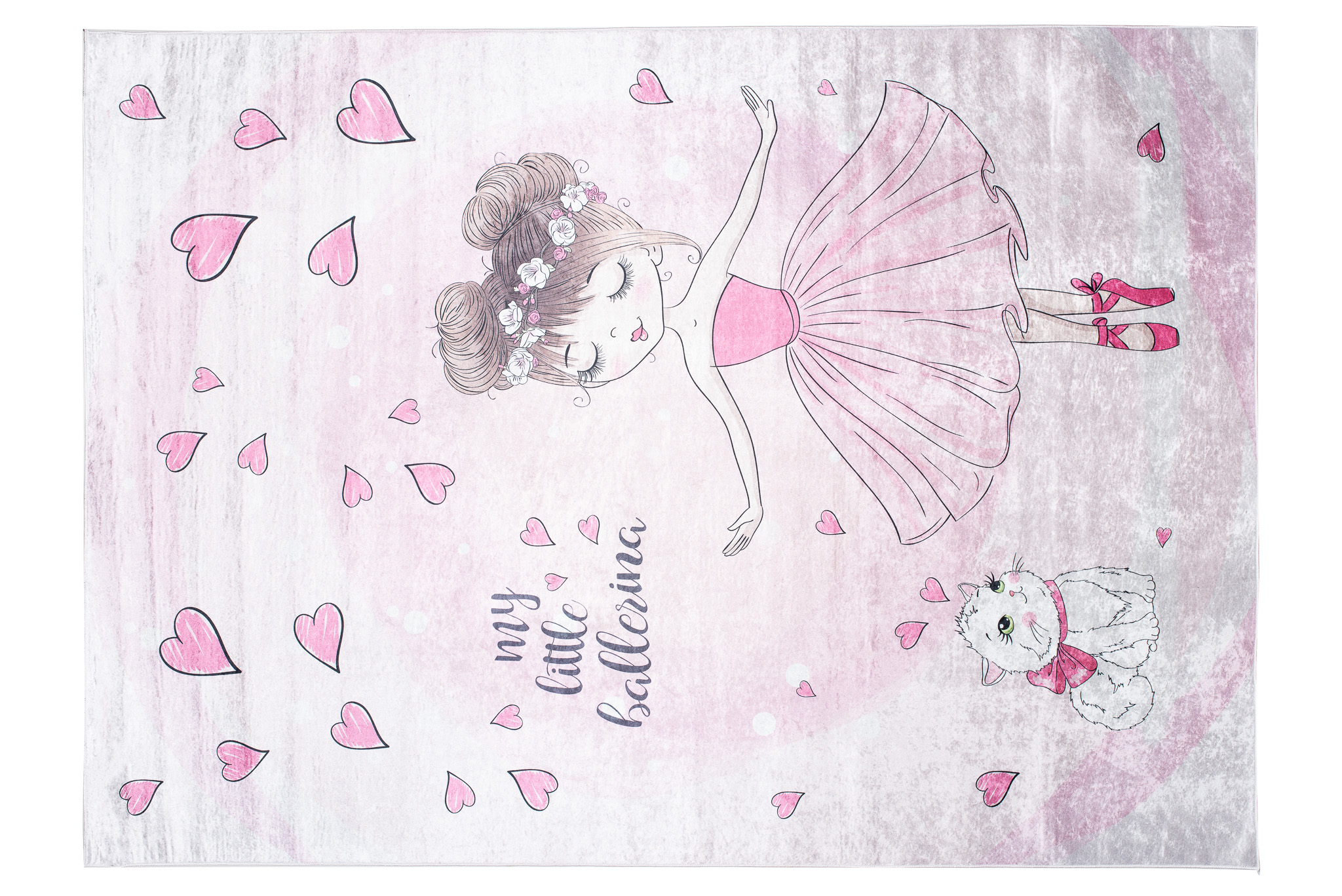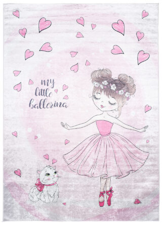 Dywan EmmaDziecięcy Różowy Baletnica Kot Antypoślizgowy