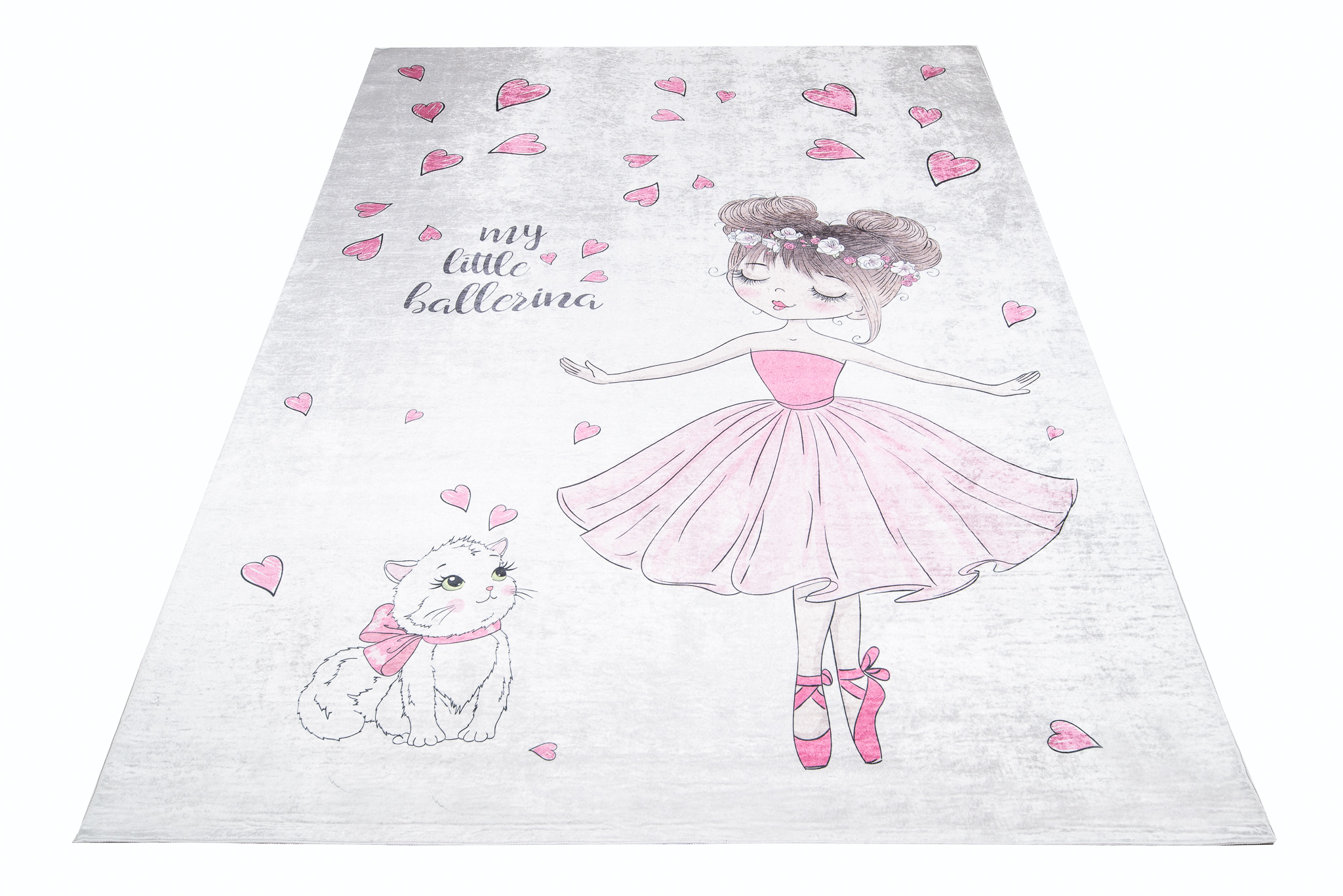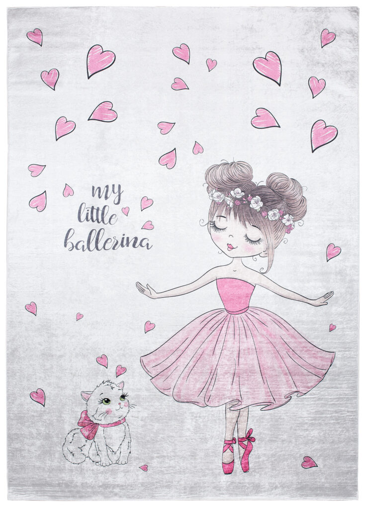 Dywan EmmaDziecięcy Różowy Baletnica Kot Antypoślizgowy