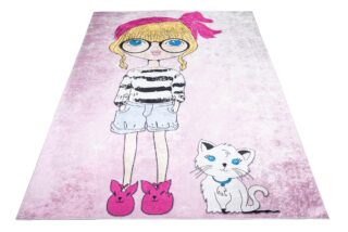Dywan EmmaDziecięcy Różowy Dziewczynka Kot