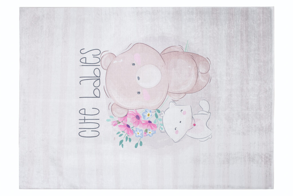 Dywan EmmaDziecięcy Szary Miś Kot Antypoślizgowy