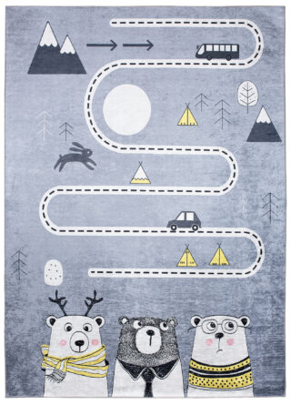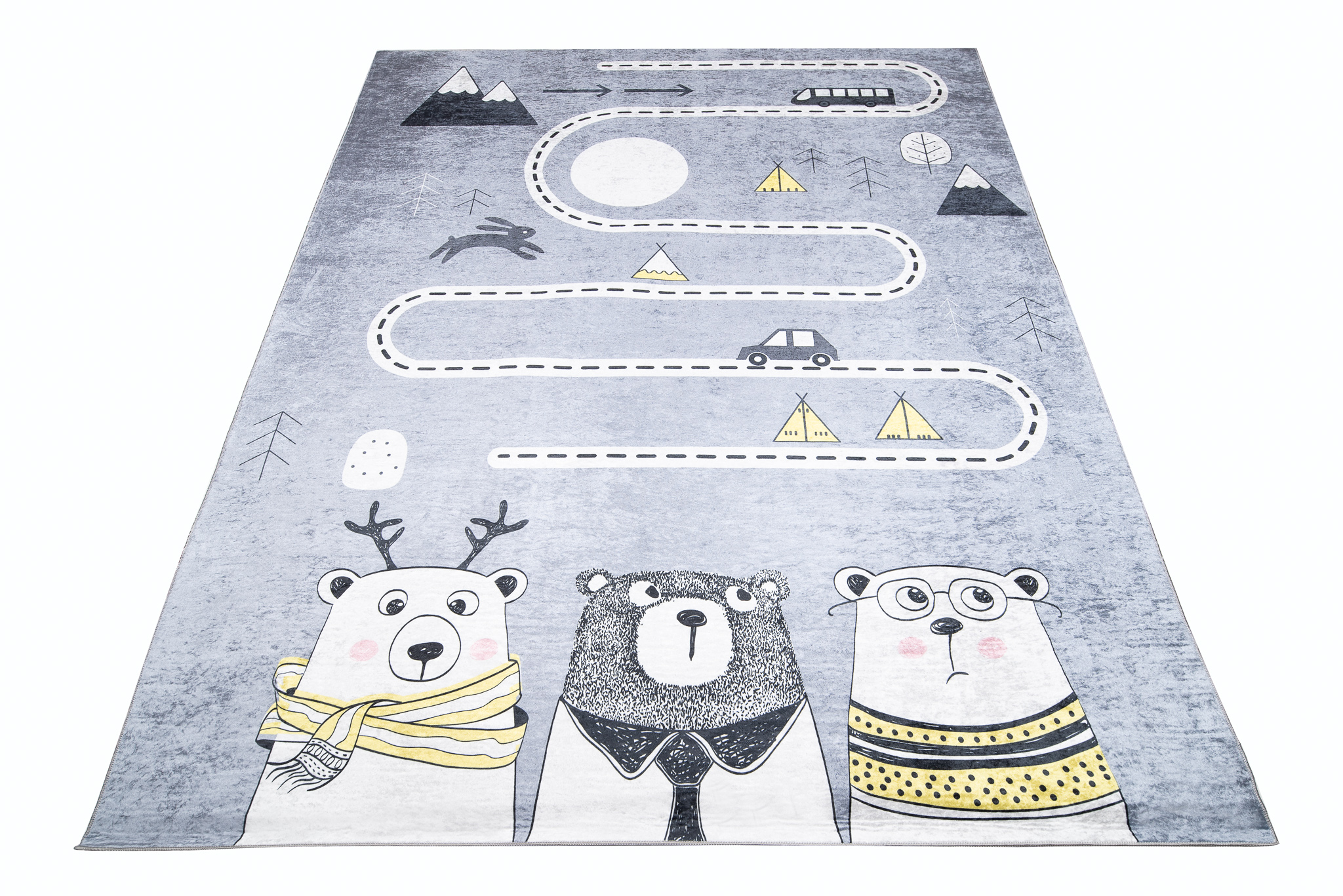 Dywan EmmaDziecięcy Szary Misie Ulica Antypoślizgowy