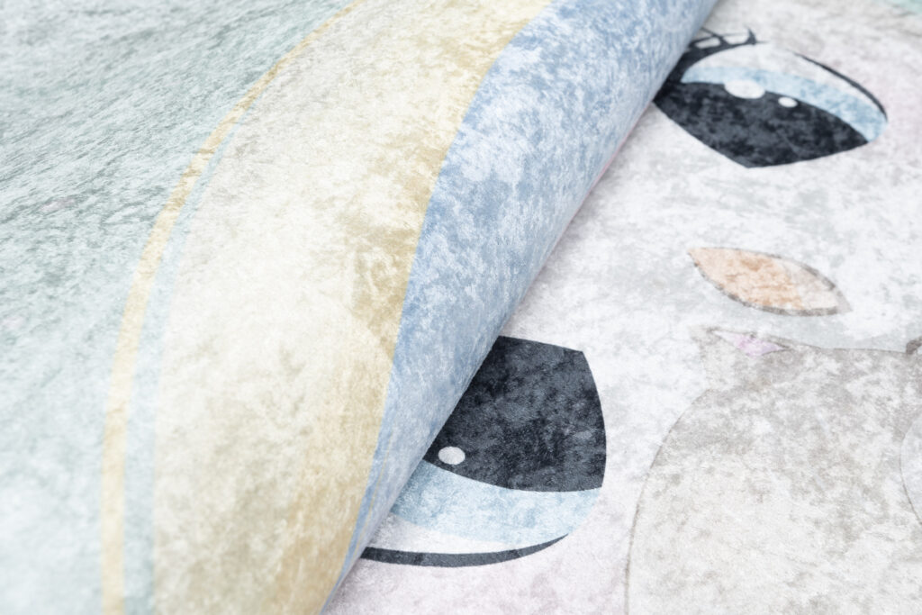Kolekcja Emma to dywany drukowane, brak klasycznego włosia to coś co czyni je jeszcze bardziej wyjątkowymi. Można je prać w pralce (w temperaturze 30 stopni) i mają antypoślizgowy spód – na wypadek, gdyby Twoje dziecko postanowiło uczynić z dywanu swój nowy plac zabaw. Mimo krótkiego runa, dywan jest przyjemny w dotyku i świetnie izoluje zimno. Dekoracja jest bardzo lekka – ułatwia to sprzątanie, jak i daje możliwość stworzenia kącika do zabawy w prawie każdym miejscu w domu.