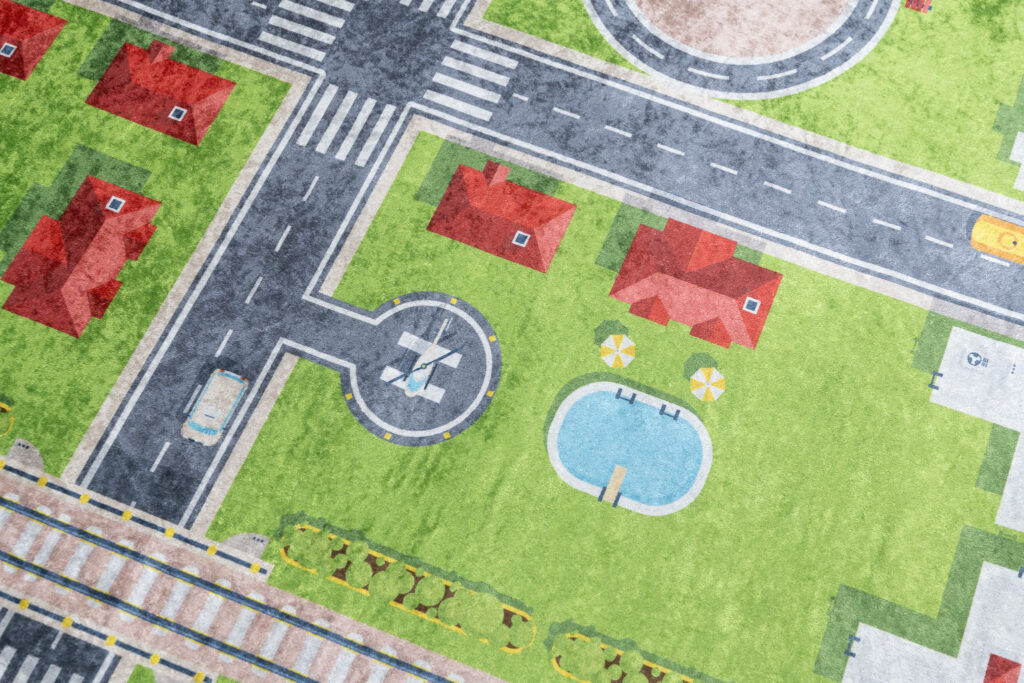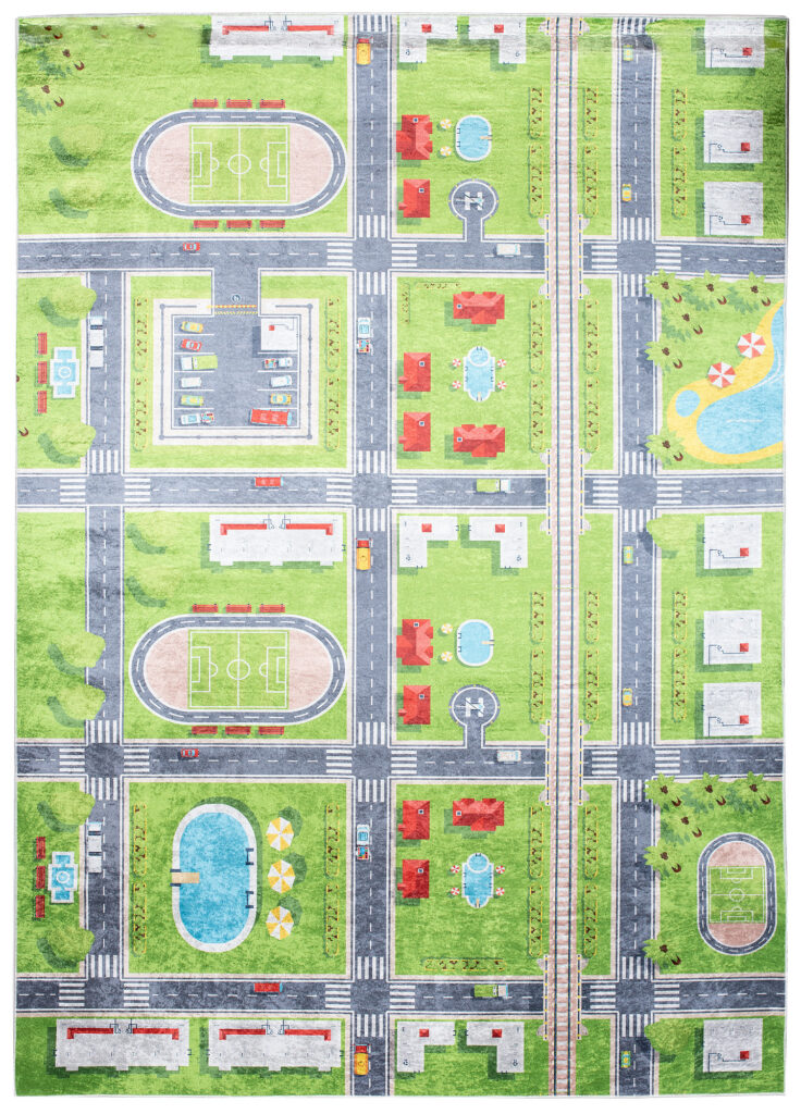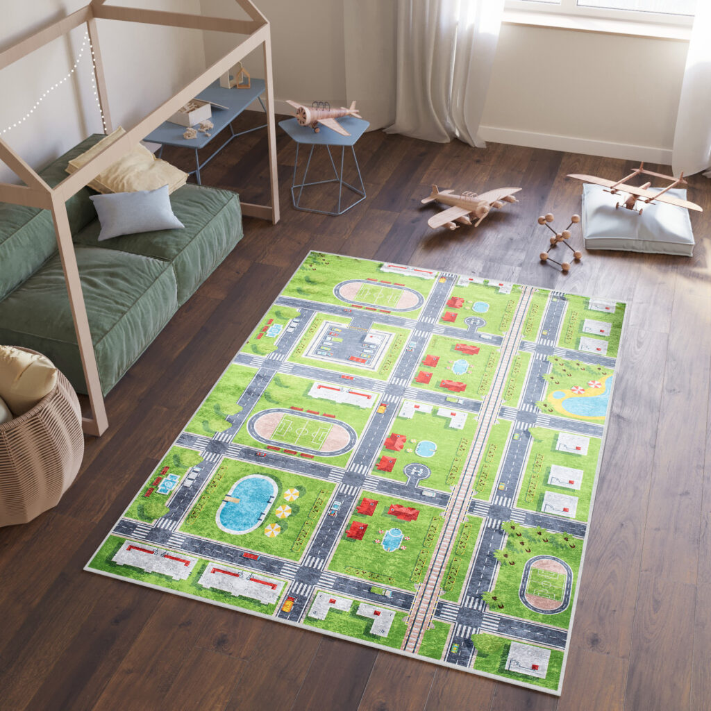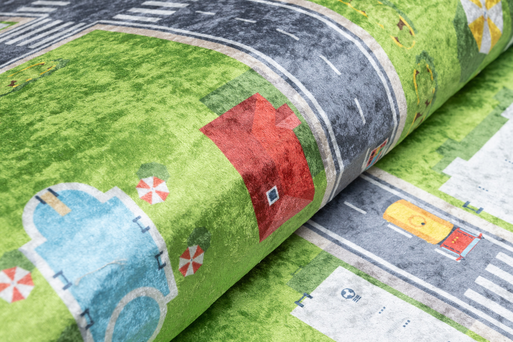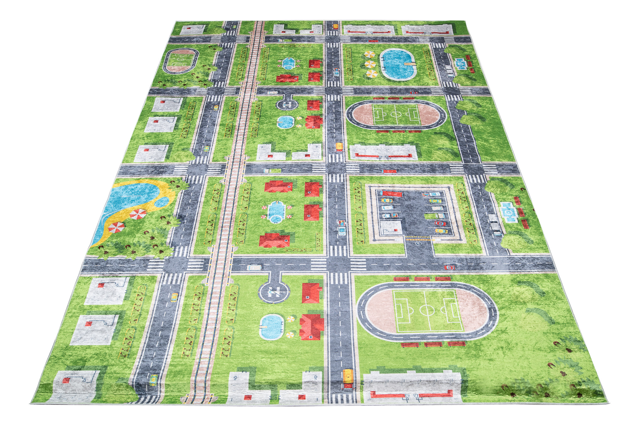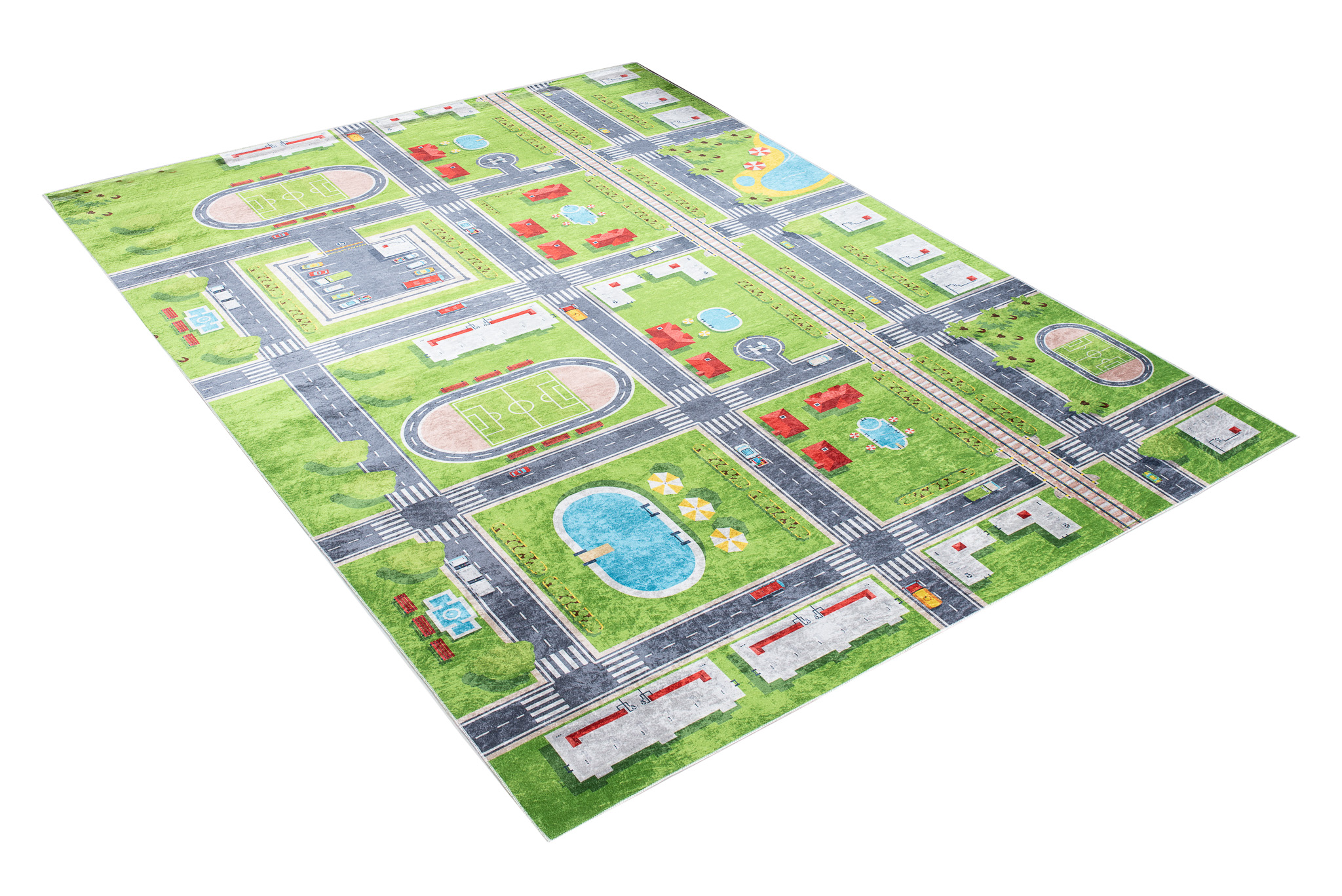 Dywan EmmaDziecięcy Zielony Szary Miasto Antypoślizgowy