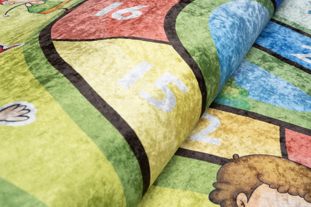 Kolekcja Emma to dywany drukowane, brak klasycznego włosia to coś co czyni je jeszcze bardziej wyjątkowymi. Można je prać w pralce (w temperaturze 30 stopni) i mają antypoślizgowy spód – na wypadek, gdyby Twoje dziecko postanowiło uczynić z dywanu swój nowy plac zabaw. Mimo krótkiego runa, dywan jest przyjemny w dotyku i świetnie izoluje zimno. Dekoracja jest bardzo lekka – ułatwia to sprzątanie, jak i daje możliwość stworzenia kącika do zabawy w prawie każdym miejscu w domu.