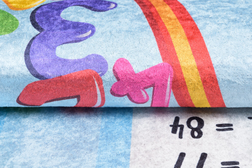Kolekcja Emma to dywany drukowane, brak klasycznego włosia to coś co czyni je jeszcze bardziej wyjątkowymi. Można je prać w pralce (w temperaturze 30 stopni) i mają antypoślizgowy spód – na wypadek, gdyby Twoje dziecko postanowiło uczynić z dywanu swój nowy plac zabaw. Mimo krótkiego runa, dywan jest przyjemny w dotyku i świetnie izoluje zimno. Dekoracja jest bardzo lekka – ułatwia to sprzątanie, jak i daje możliwość stworzenia kącika do zabawy w prawie każdym miejscu w domu.