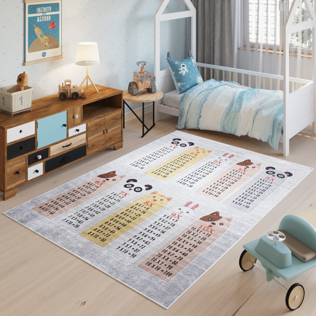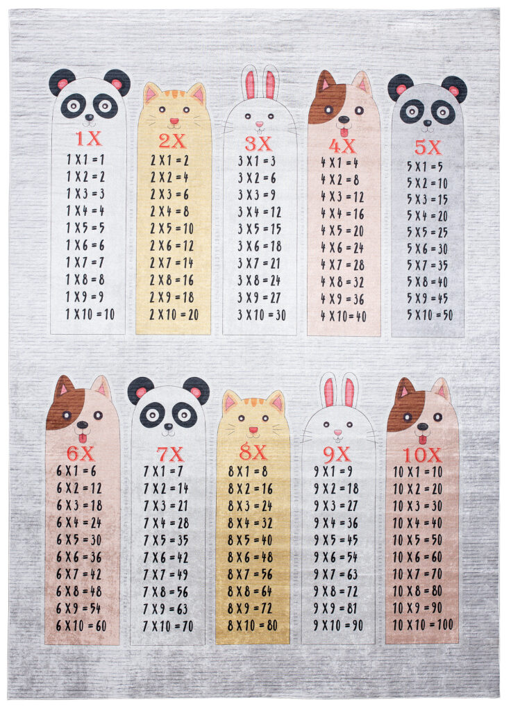 Dywan EmmaSzary Zwierzęta Tabliczka Mnożenia