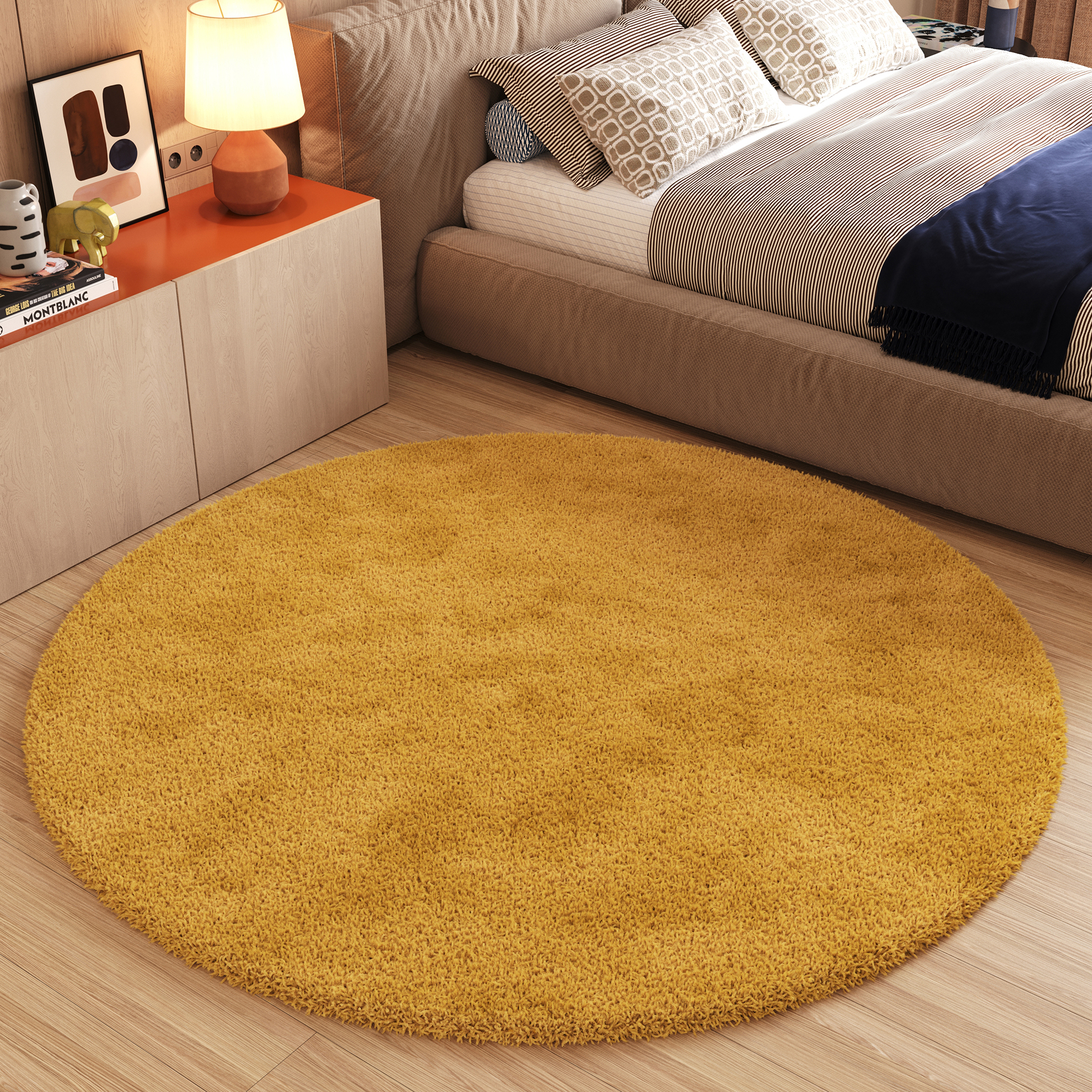 Dywan EssenceKoło Shaggy Jednokolorowy Musztardowy