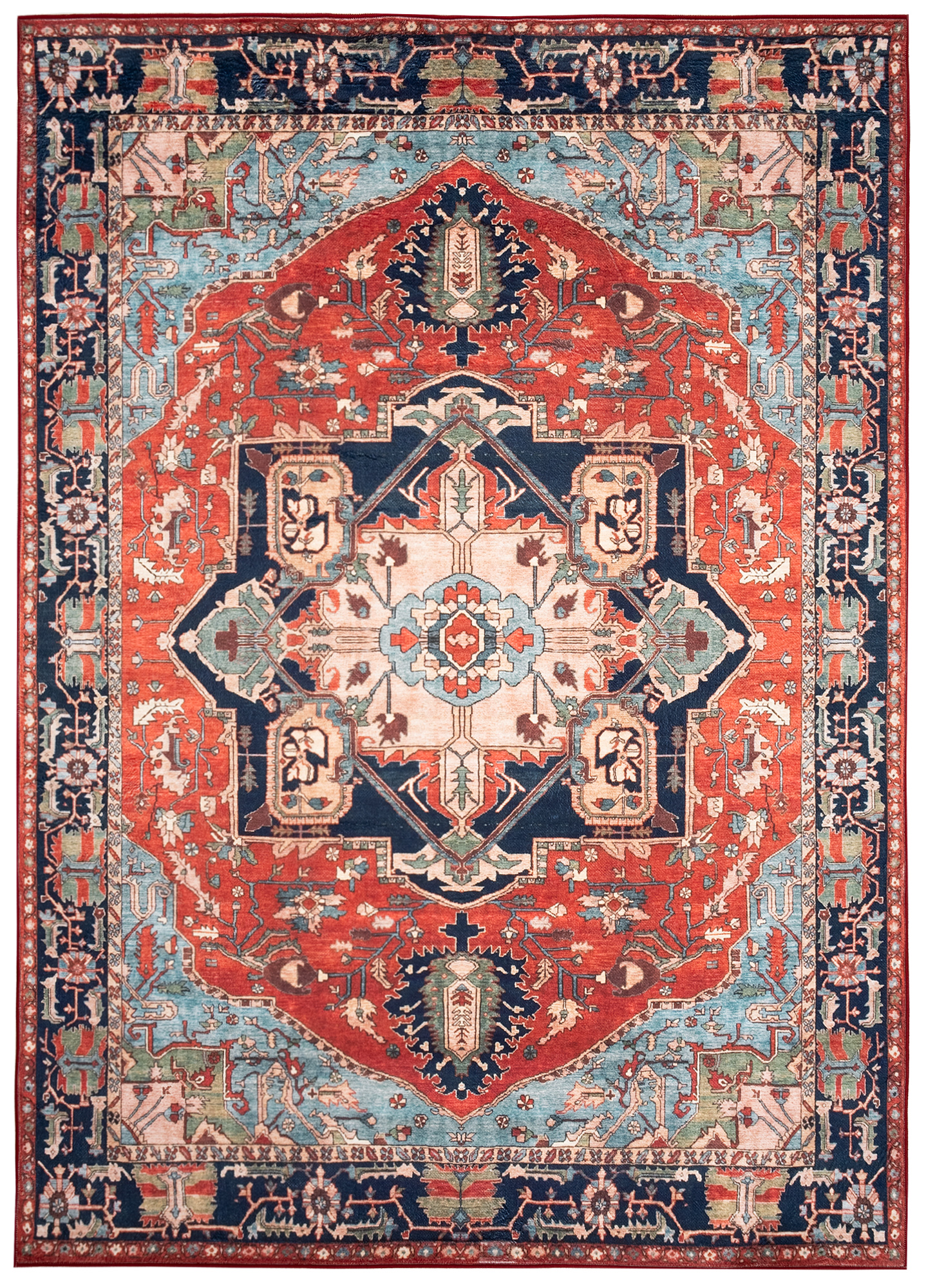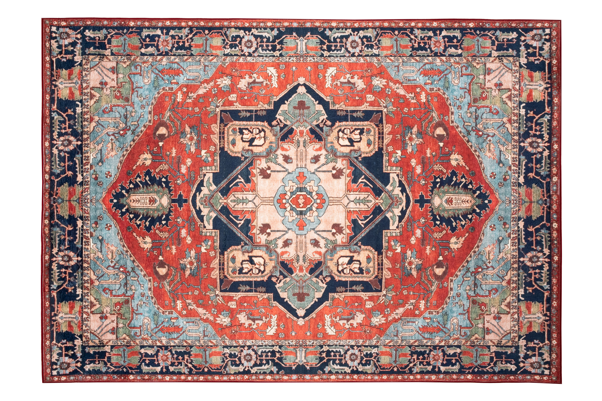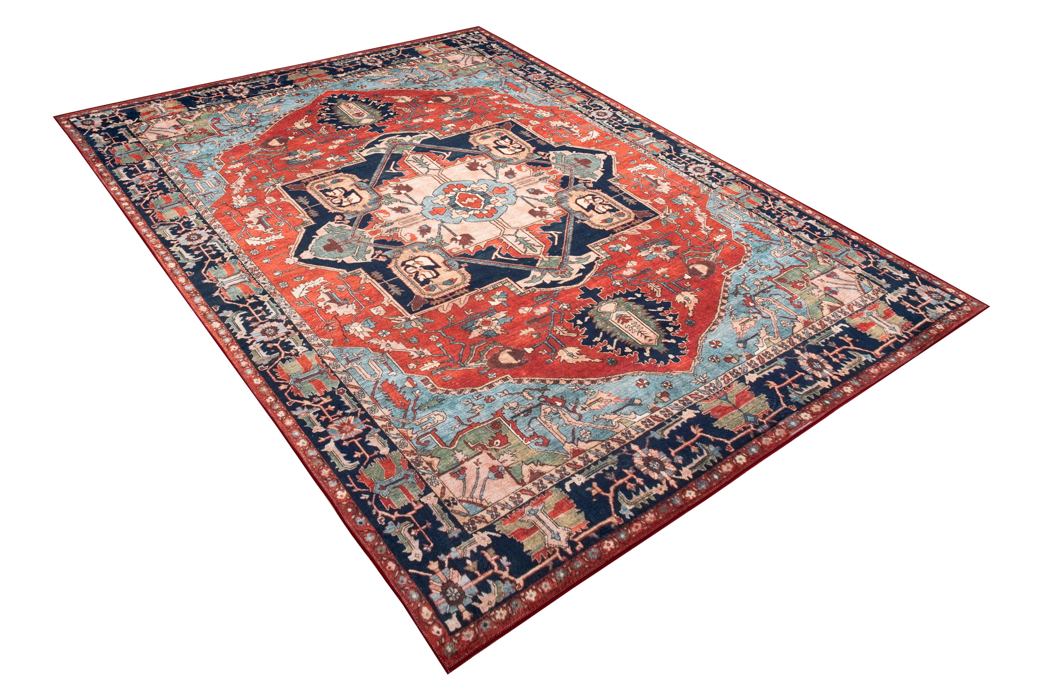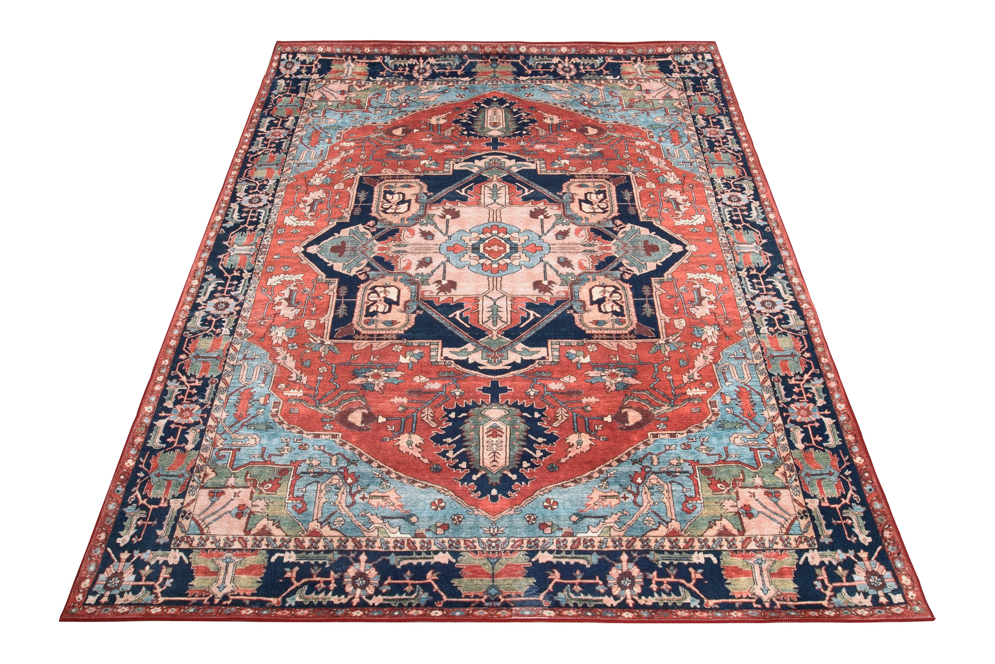 Dywan FlannelCzerwony Granatowy Rozeta Vintage